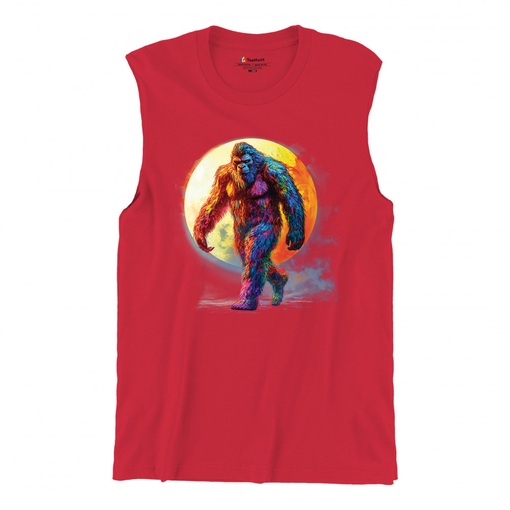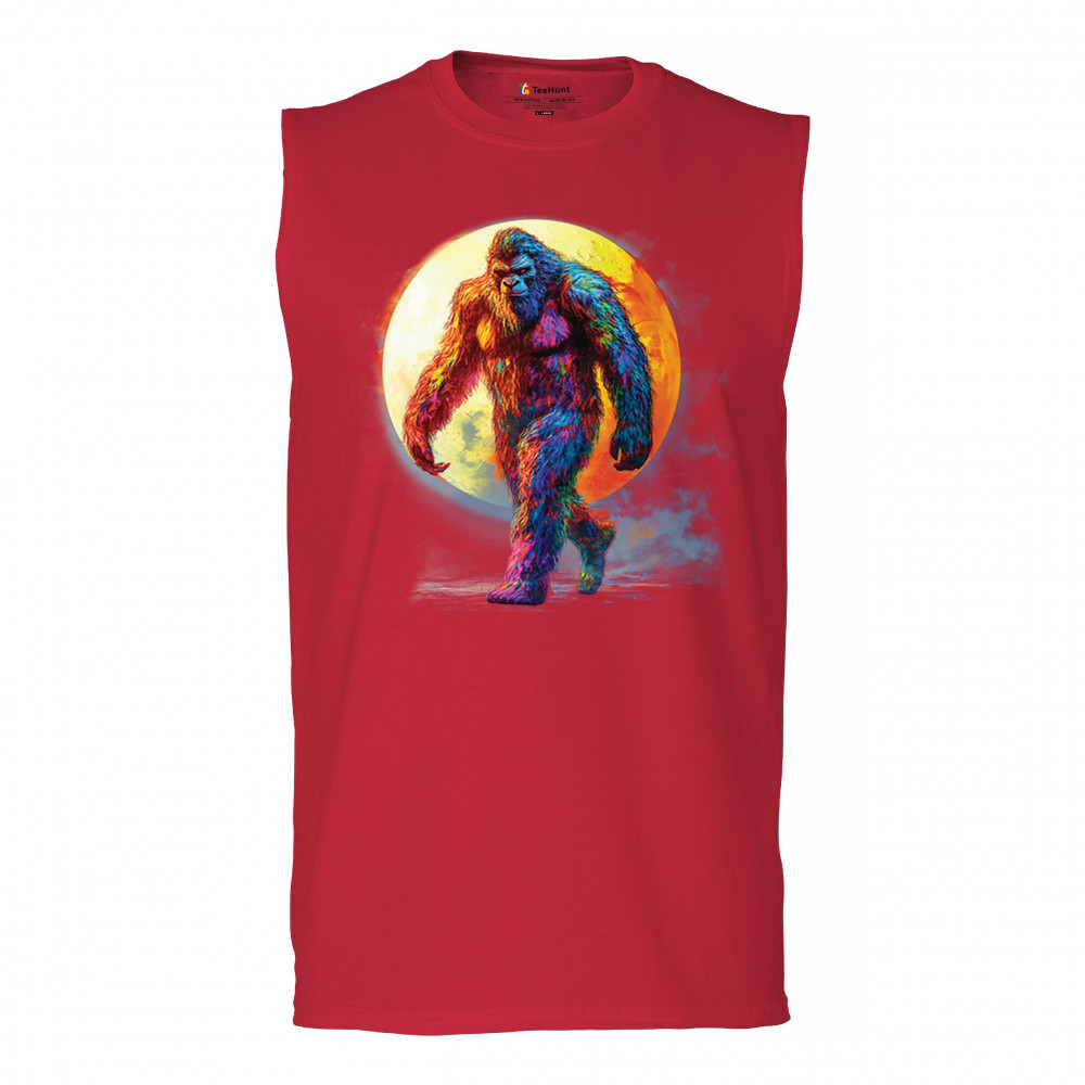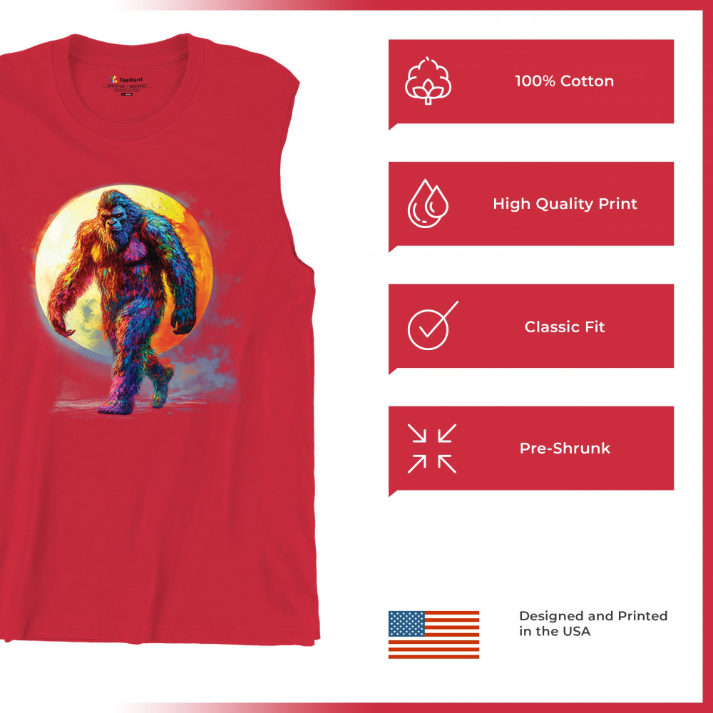 Rainbow Bigfoot under full moon design for cryptid lovers, festival goers, and psychedelic art fans. Bold, surreal, and eye-catching.
