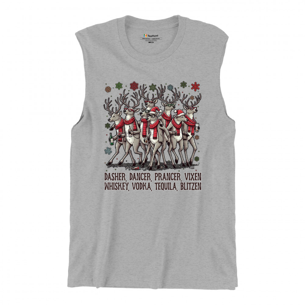 This funny holiday design features a squad of drinking reindeer carrying bottles and dressed in scarves for the ultimate Christmas party vibe. Great for bar crawls, office parties, winter gatherings, adult holiday events, white elephant exchanges, festive nights out, and anyone who loves spirited Christmas humor with a cheeky personality.