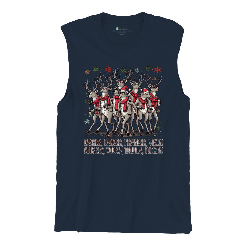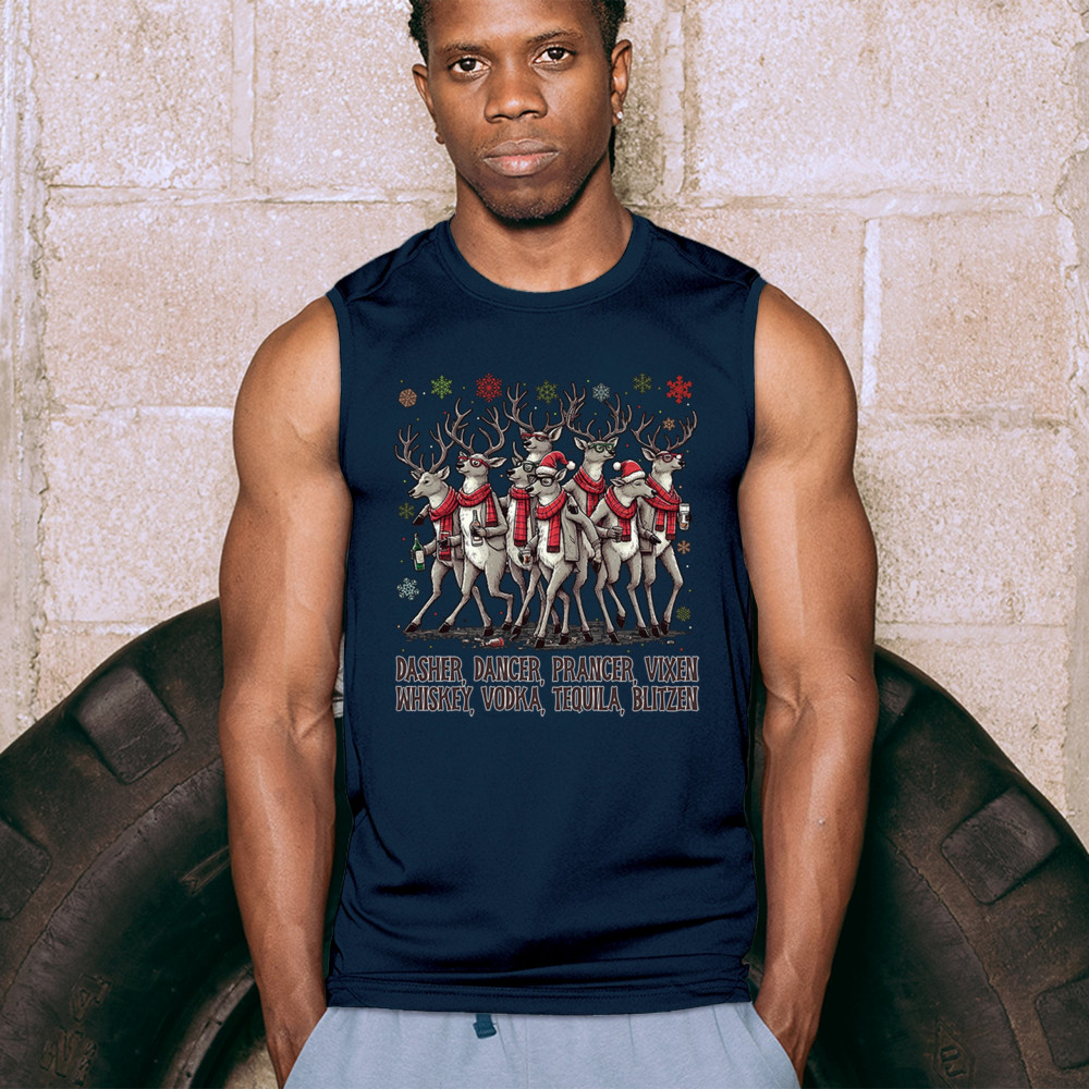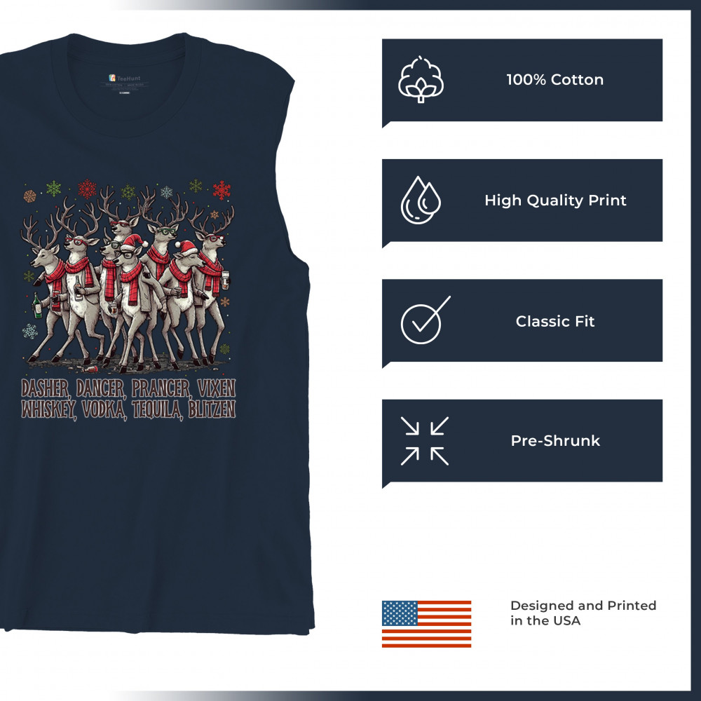 Funny drinking-reindeer Christmas design perfect for parties, bar crawls, and festive adult humor. Great for holiday laughs and spirited winter fun.