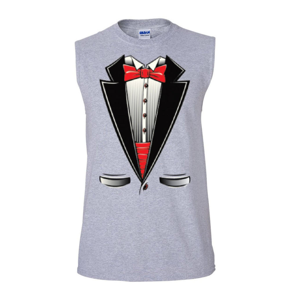 FUNNY TUXEDO BOW TIE muscle shirt tux wedding party gray