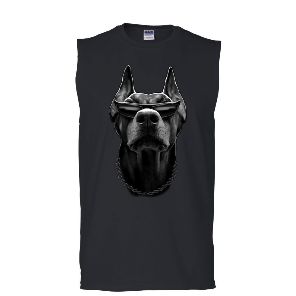 GANGSTA DOBERMAN WITH GLASSES muscle shirt pet dog lovers swag badass sleeveless black