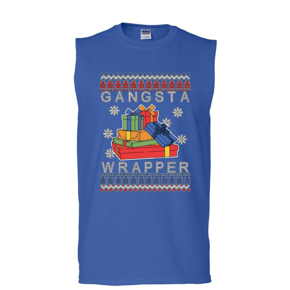 GANGSTA WRAPPER ugly sweater muscle shirt merry jolly christmas xmas sleeveless blue