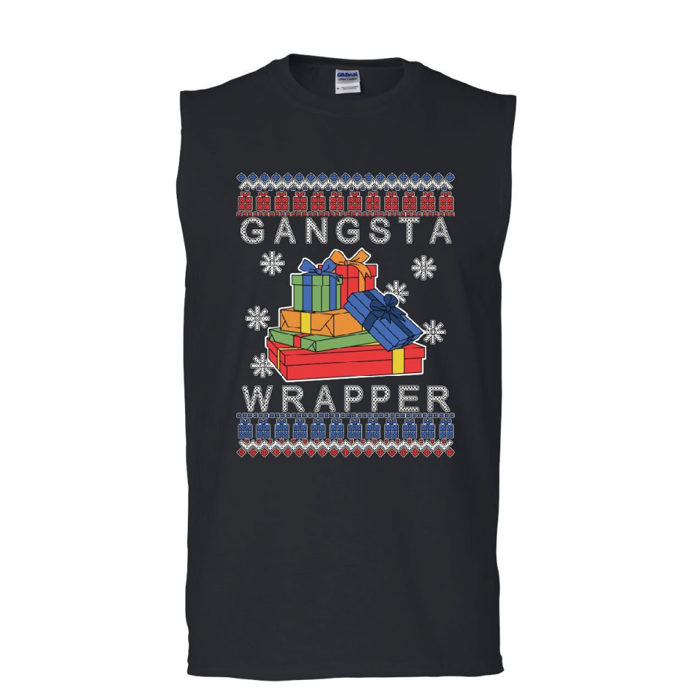 GANGSTA WRAPPER ugly sweater muscle shirt merry jolly christmas xmas sleeveless black