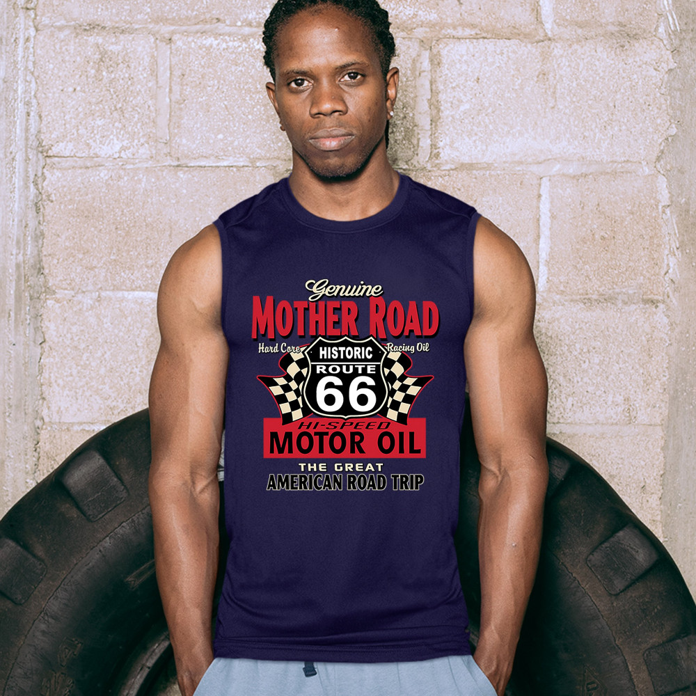 GENUINE MOTHER ROAD HISTORIC ROUTE 66 muscle shirt american road trip men's navy blue