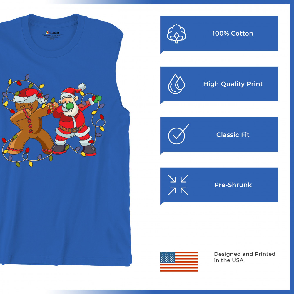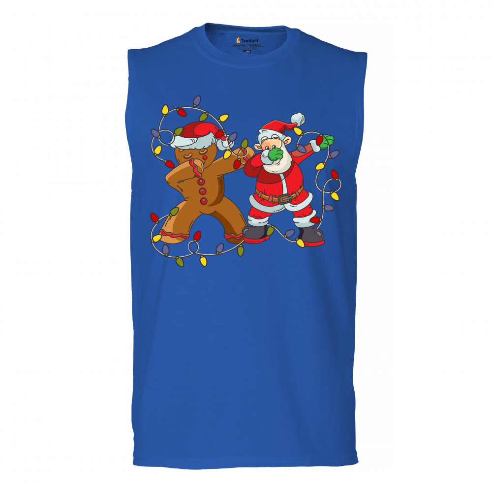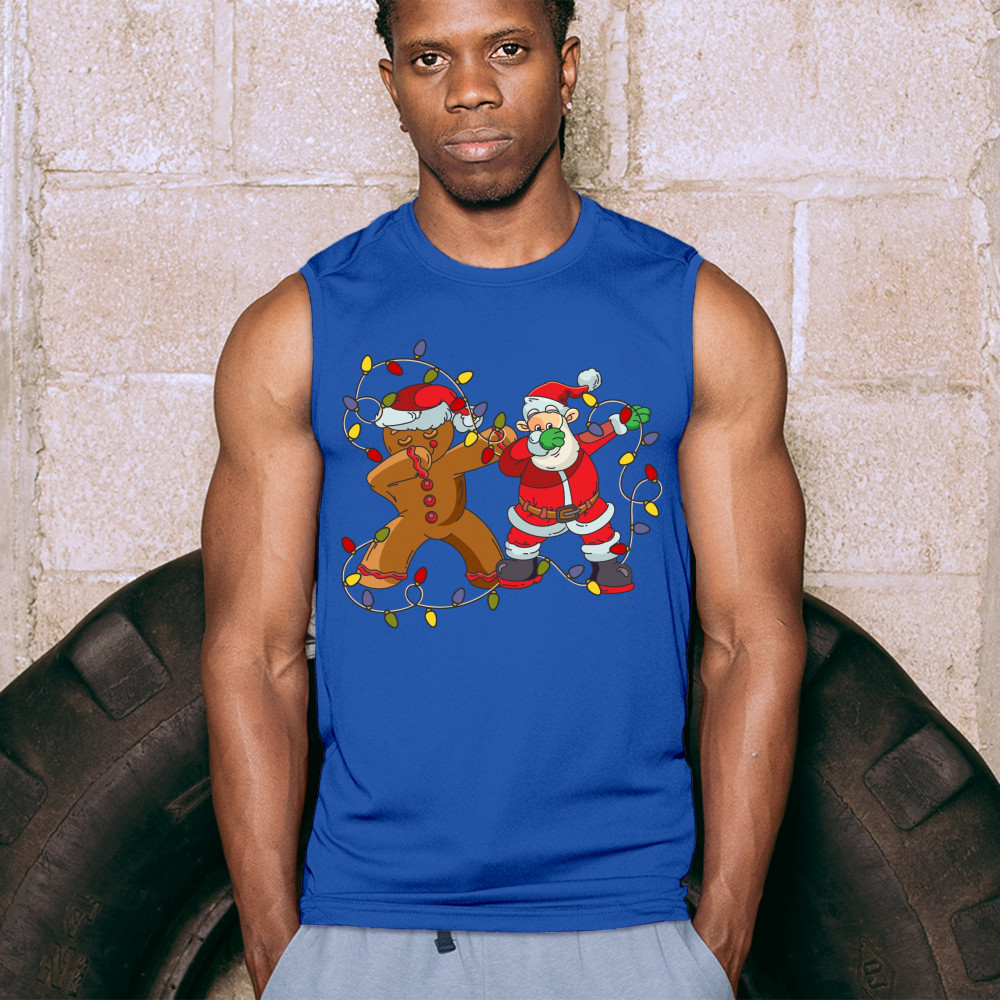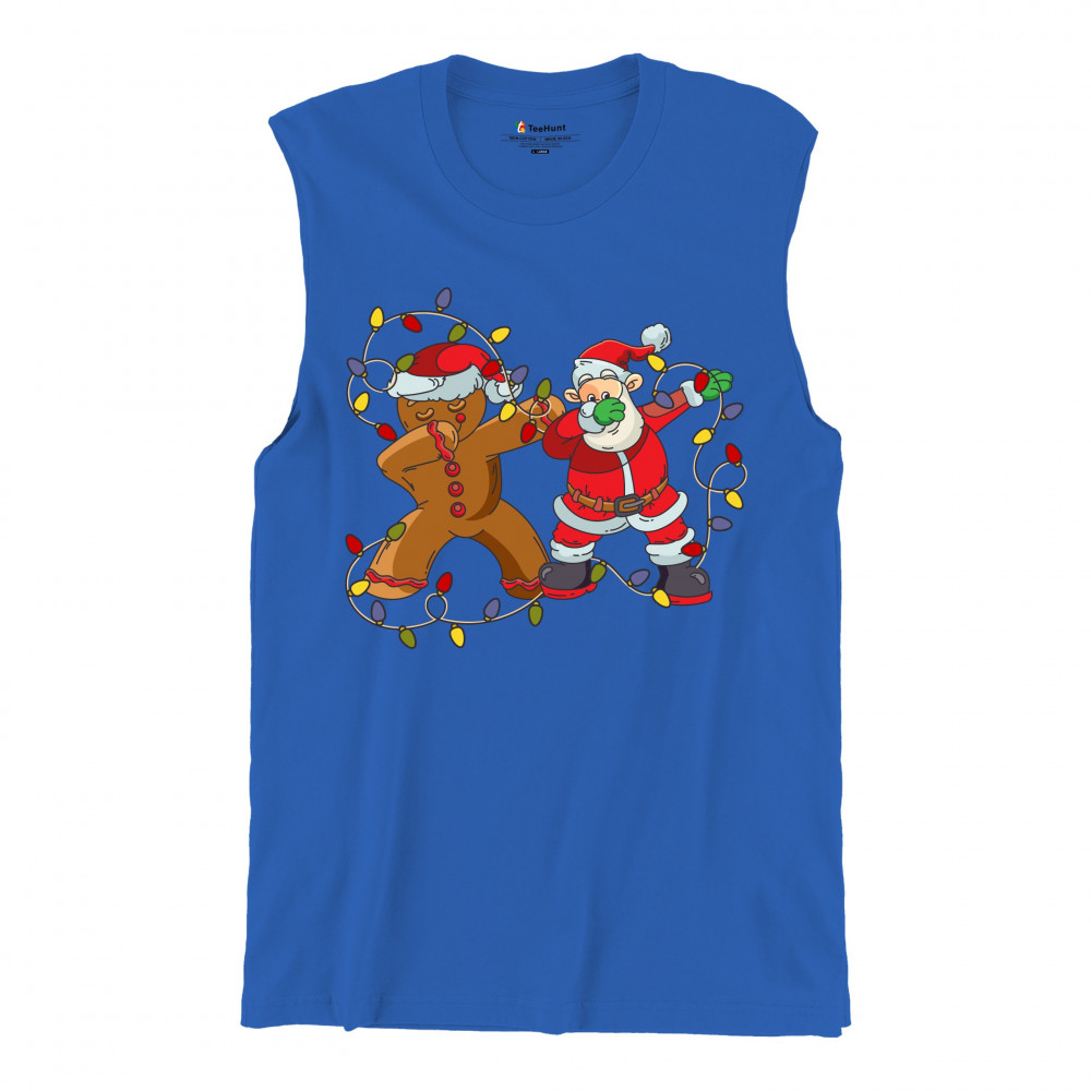 GINGERBREAD MAN AND SANTA CLAUS DAB DANCE muscle shirt merry christmas men's royal blue