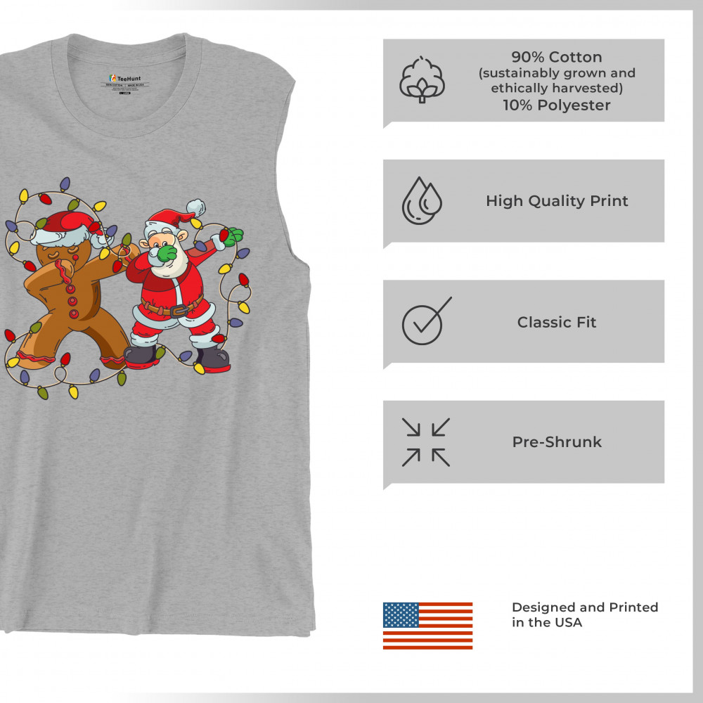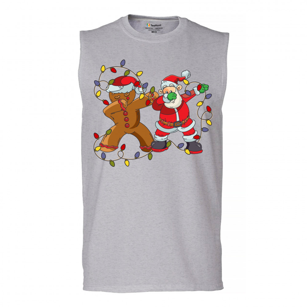 GINGERBREAD MAN AND SANTA CLAUS DAB DANCE muscle shirt merry christmas men's gray
