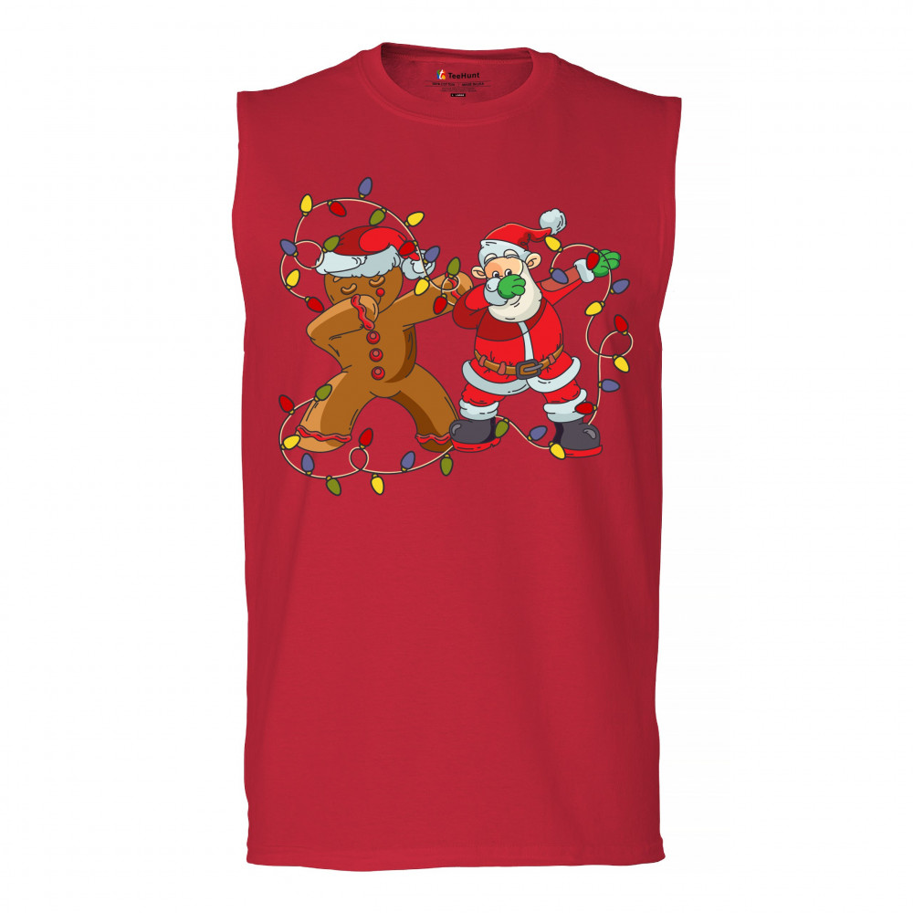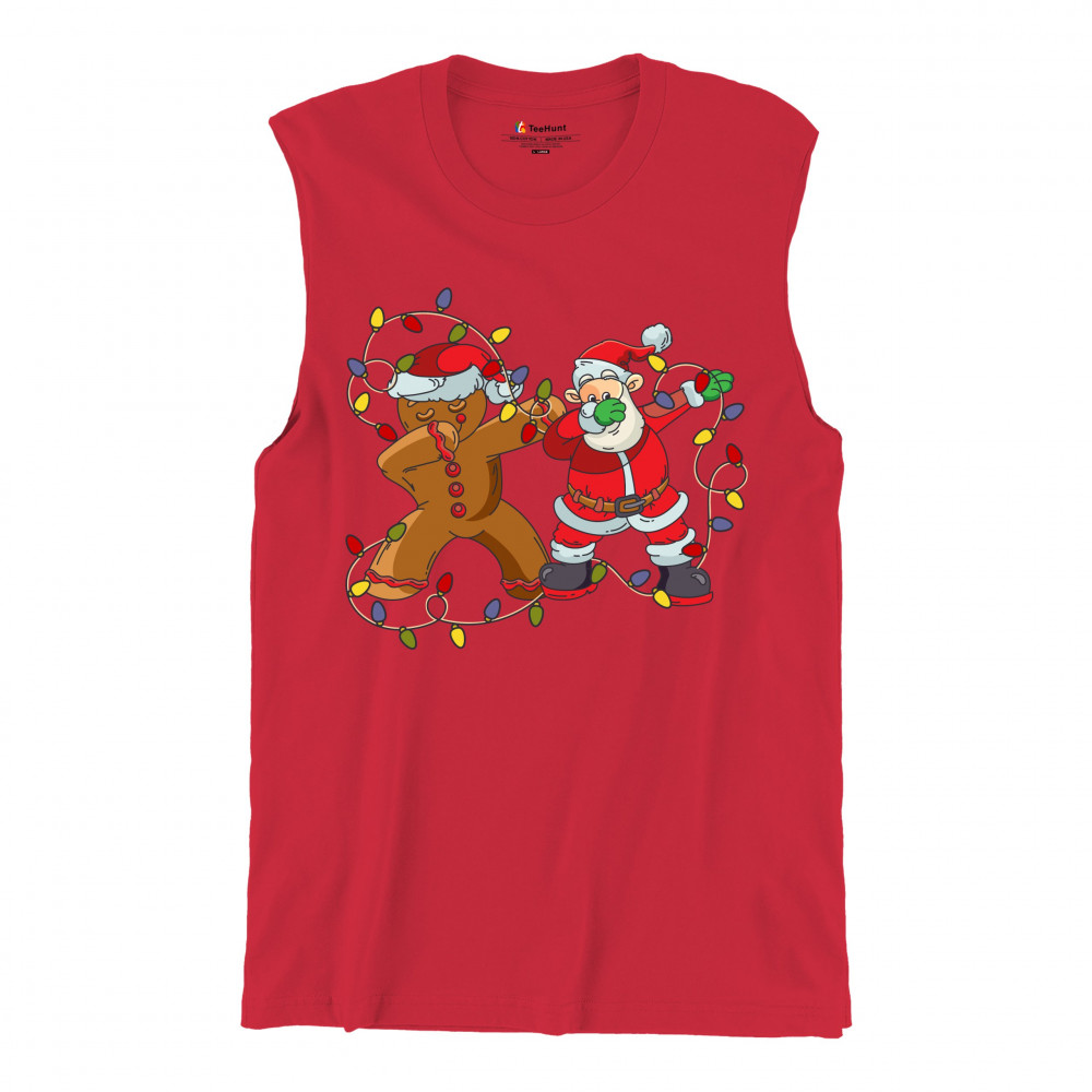 GINGERBREAD MAN AND SANTA CLAUS DAB DANCE muscle shirt merry christmas men's red