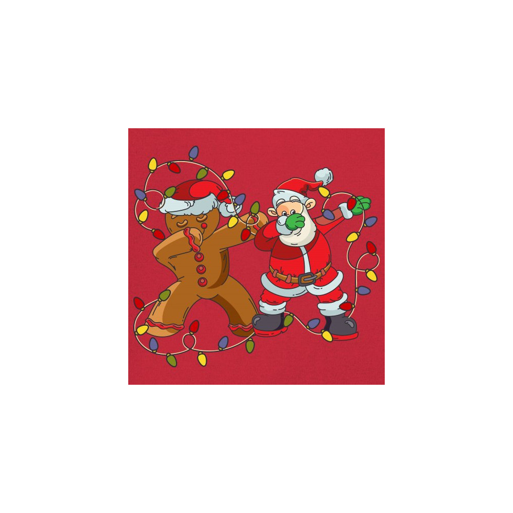 A funny print featuring a gingerbread man and Santa Claus dab dancing while surrounded by Christmas lights. Amazing choice to make people smile and spread positive vibes on Christmas Eve.