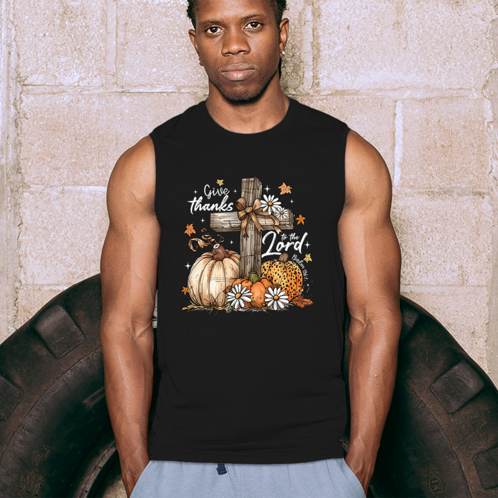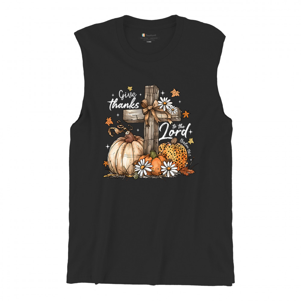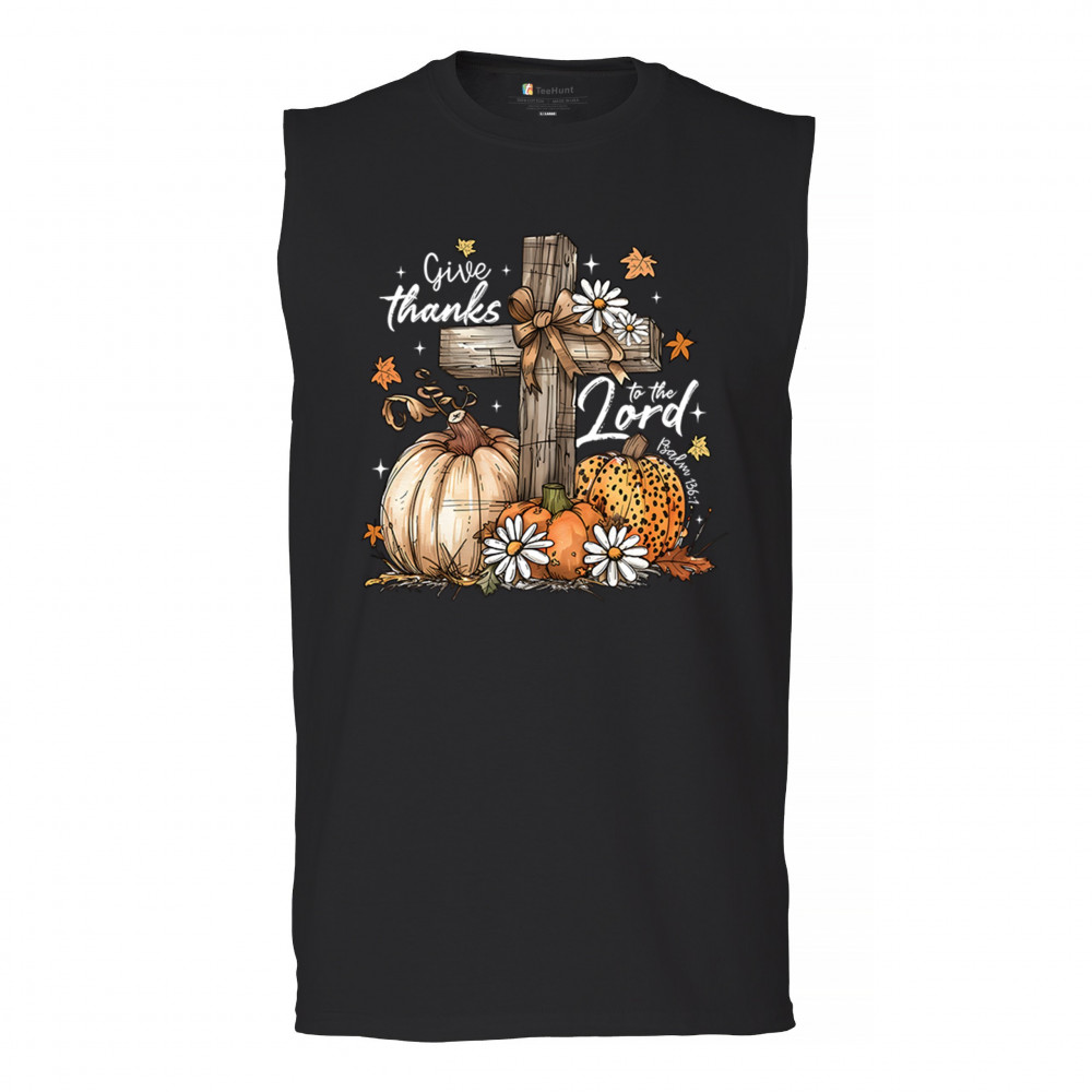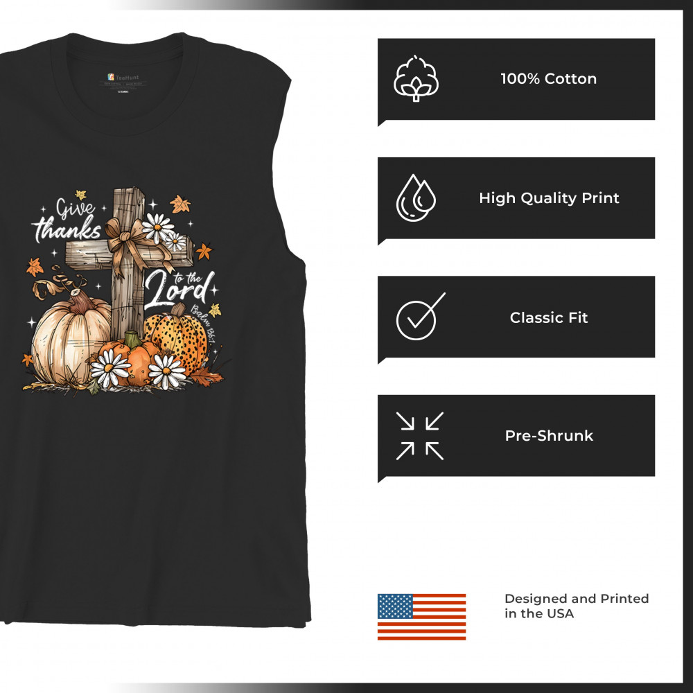 Thanksgiving design with pumpkins, daisies, and rustic cross. Perfect for Turkey Day, faithful family gatherings, and fall festival blessings.