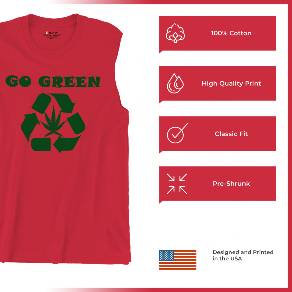 "Go Green" design combining a recycling symbol with a cannabis leaf. Perfect for those who love Mary Jane, sustainable living, and stoned humor.