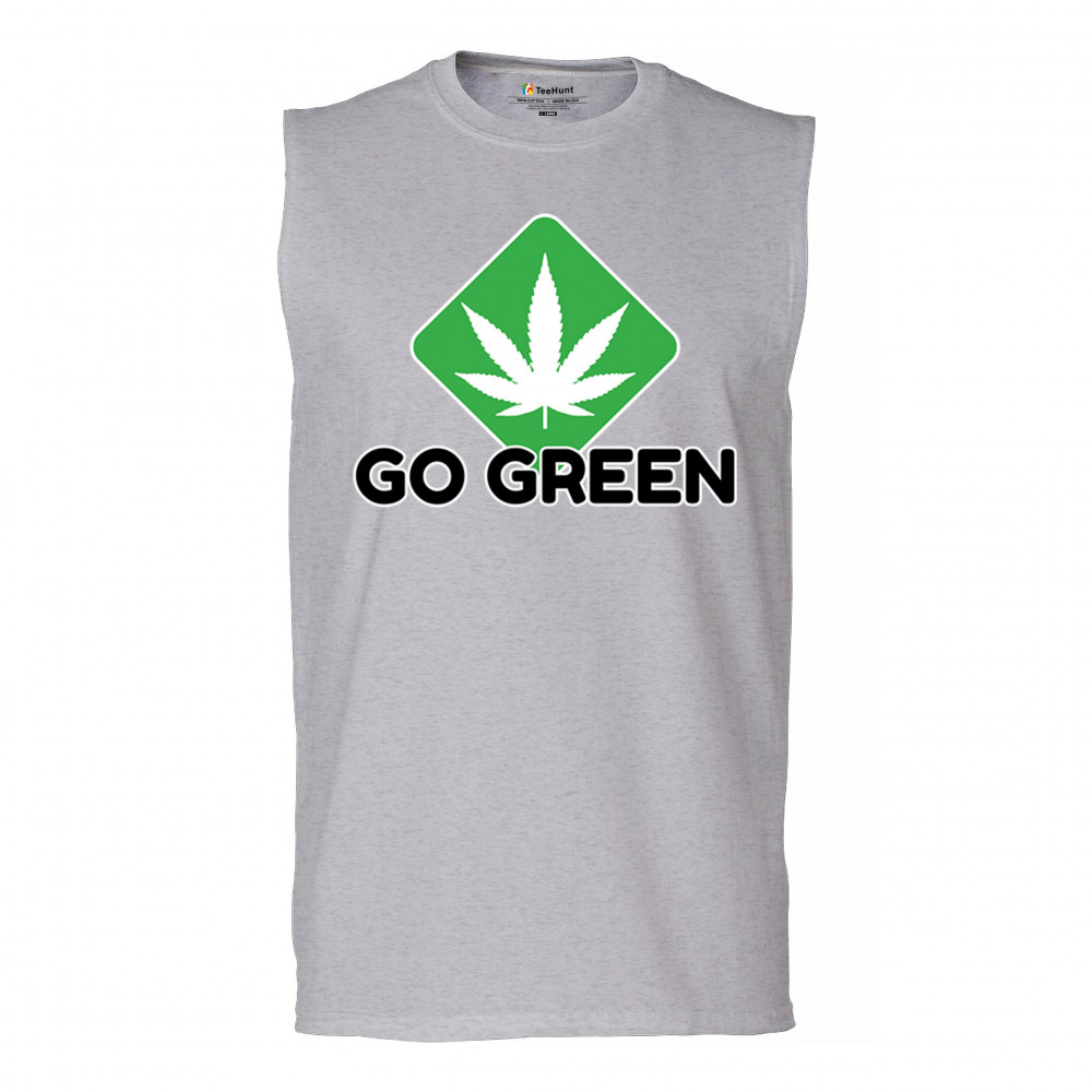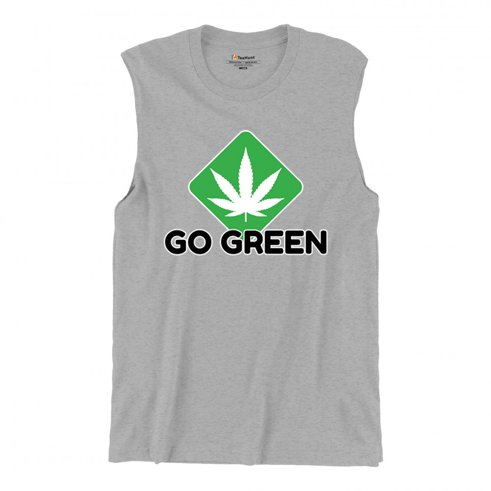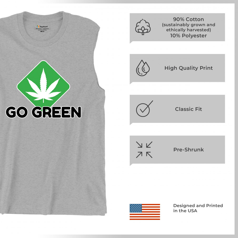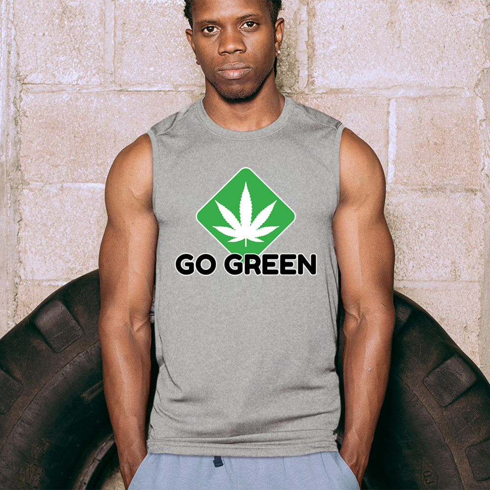 Bold Go Green design with cannabis leaf icon. Perfect for 420 fans, eco-conscious wearers, stoners, and marijuana advocates.