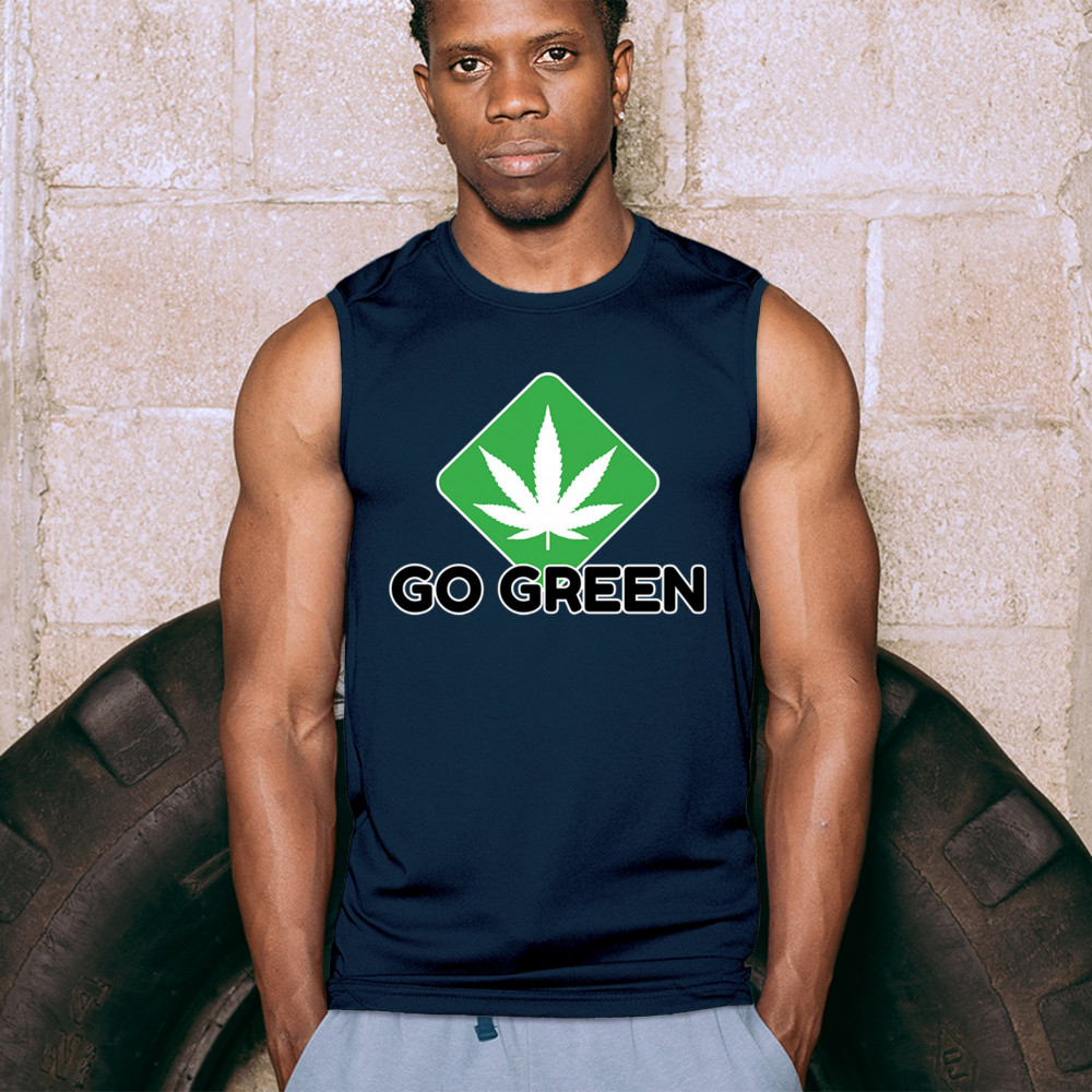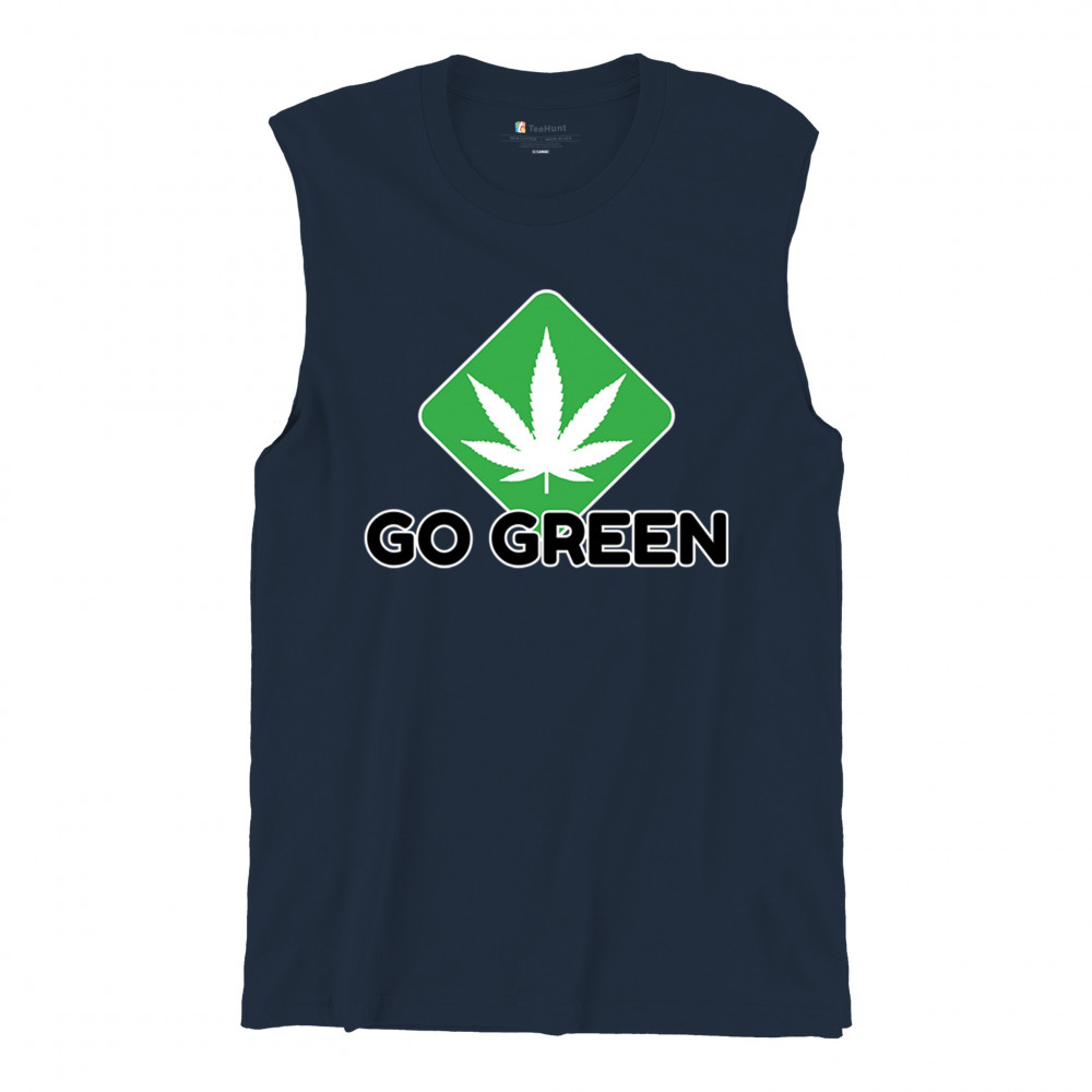 Bold Go Green design with cannabis leaf icon. Perfect for 420 fans, eco-conscious wearers, stoners, and marijuana advocates.