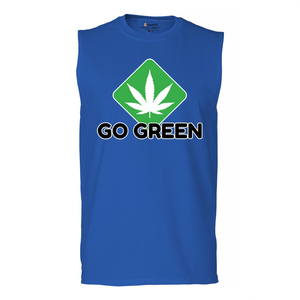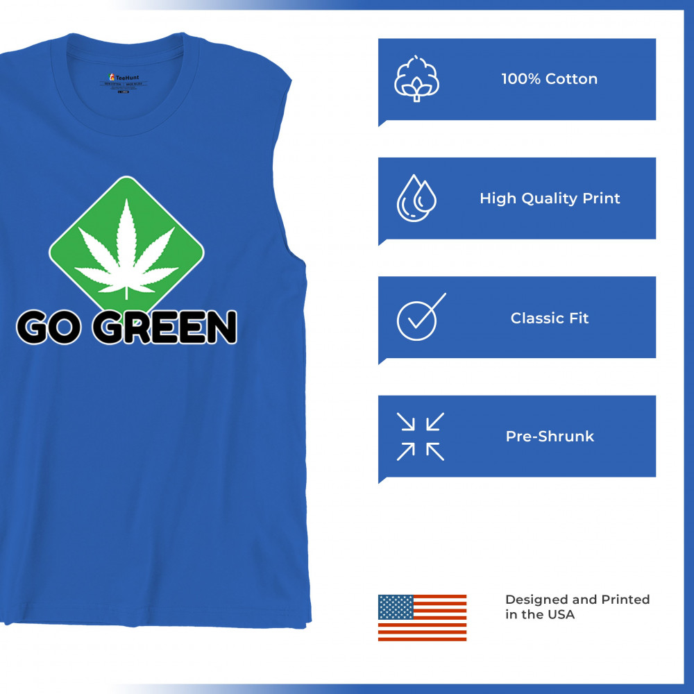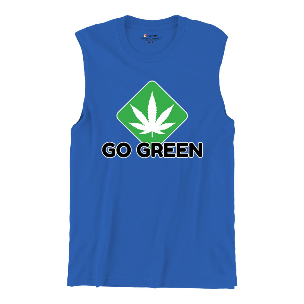 Bold Go Green design with cannabis leaf icon. Perfect for 420 fans, eco-conscious wearers, stoners, and marijuana advocates.