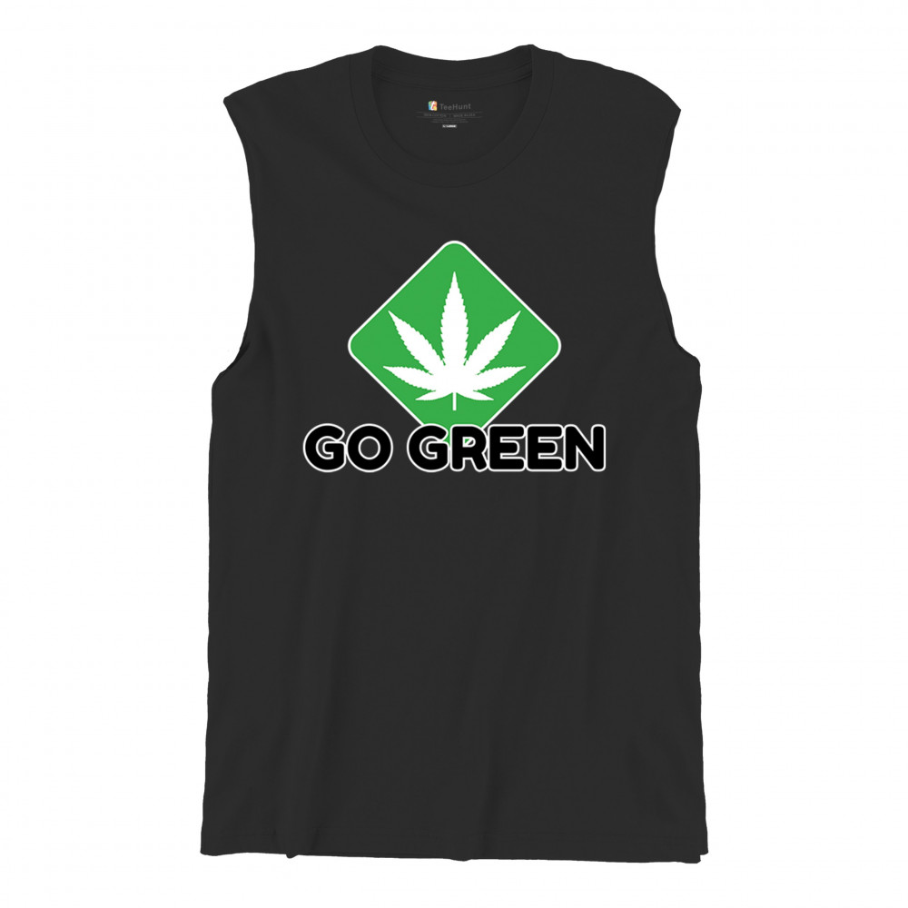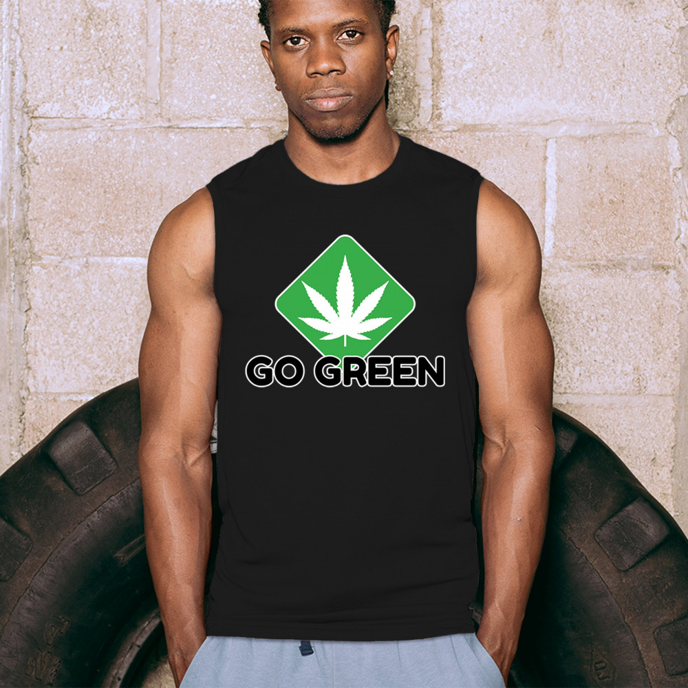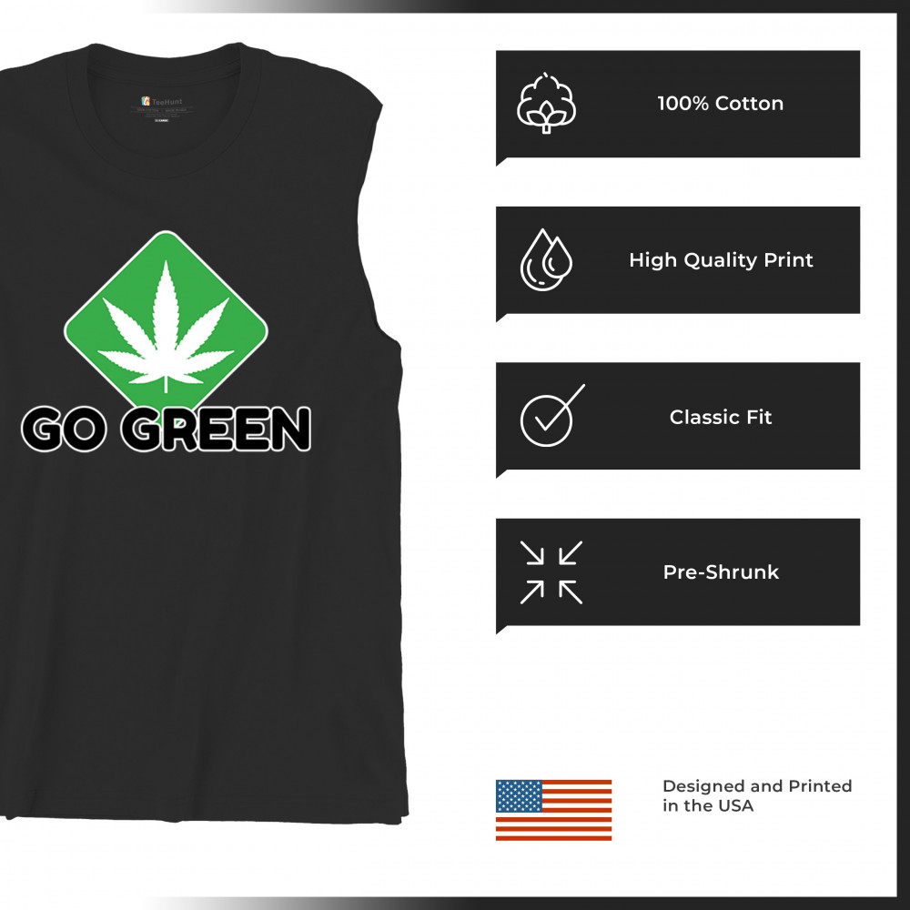 Bold Go Green design with cannabis leaf icon. Perfect for 420 fans, eco-conscious wearers, stoners, and marijuana advocates.