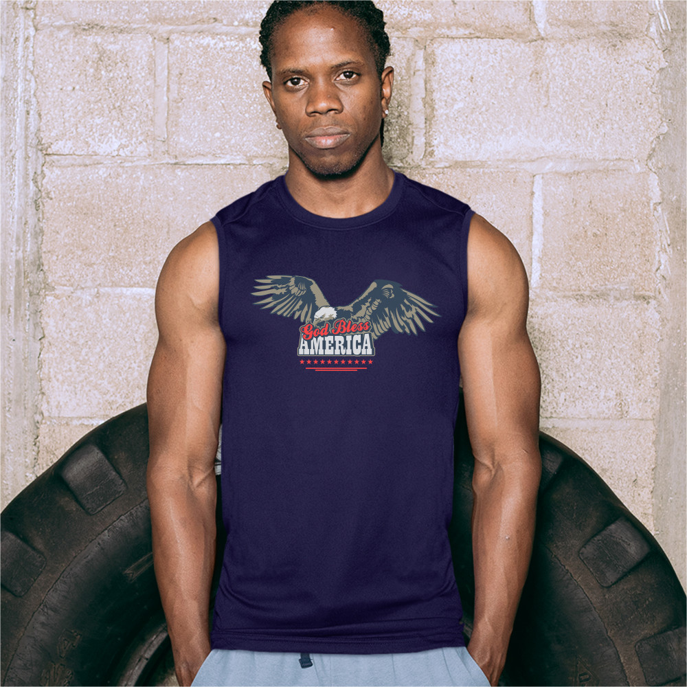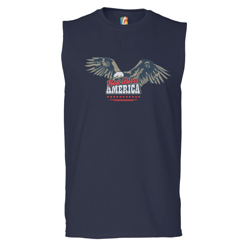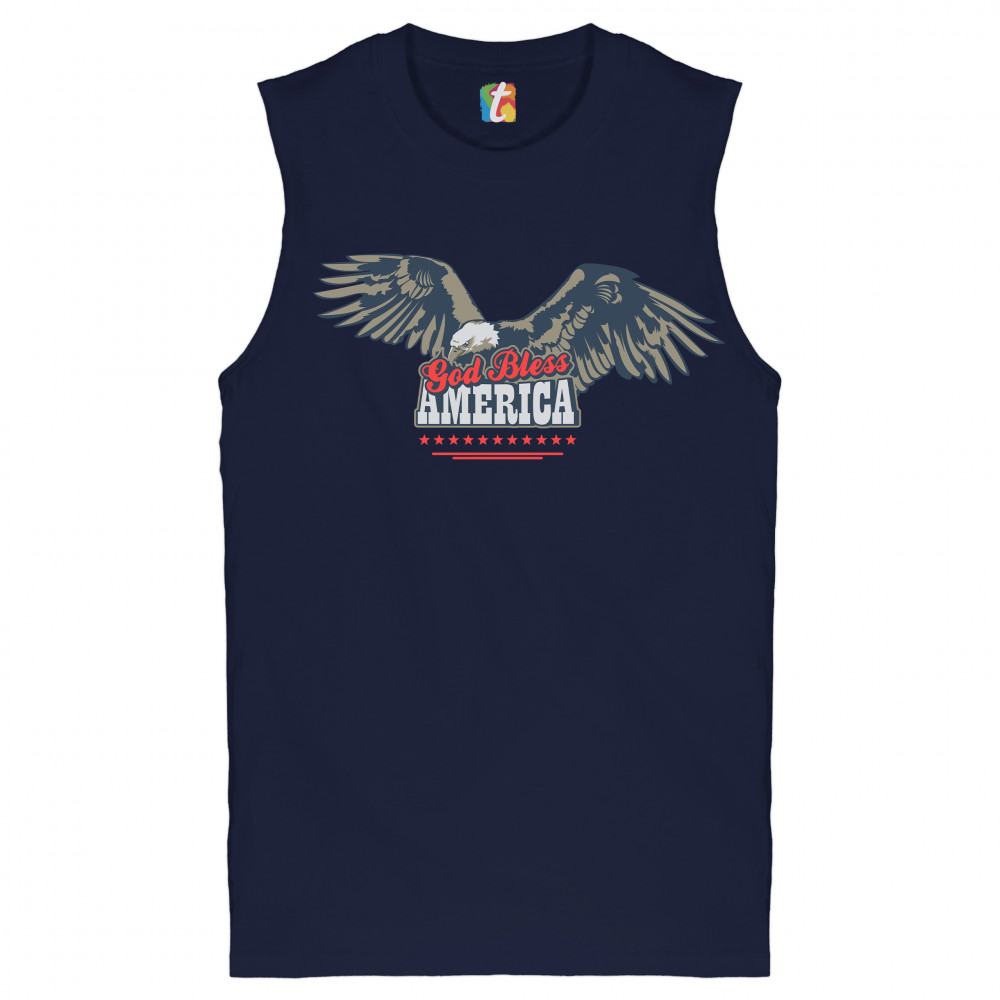 GOD BLESS AMERICA muscle shirt 4th of july bald eagle patriotic men's navy blue