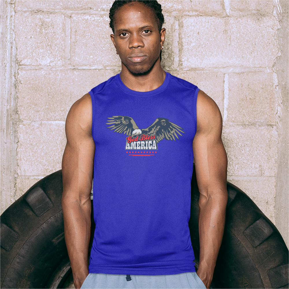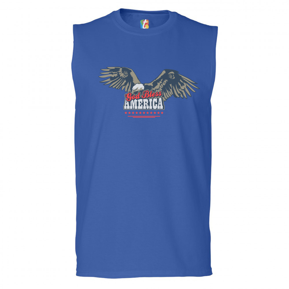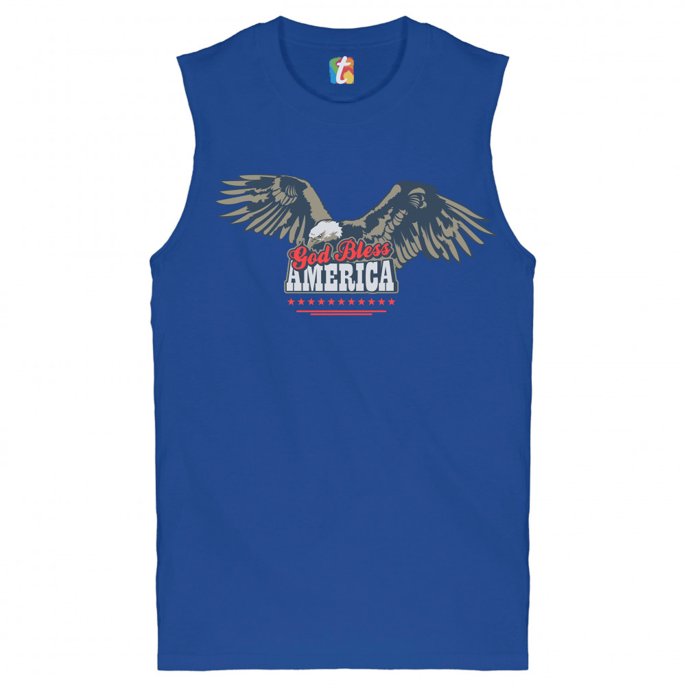 GOD BLESS AMERICA muscle shirt 4th of july bald eagle patriotic men's blue