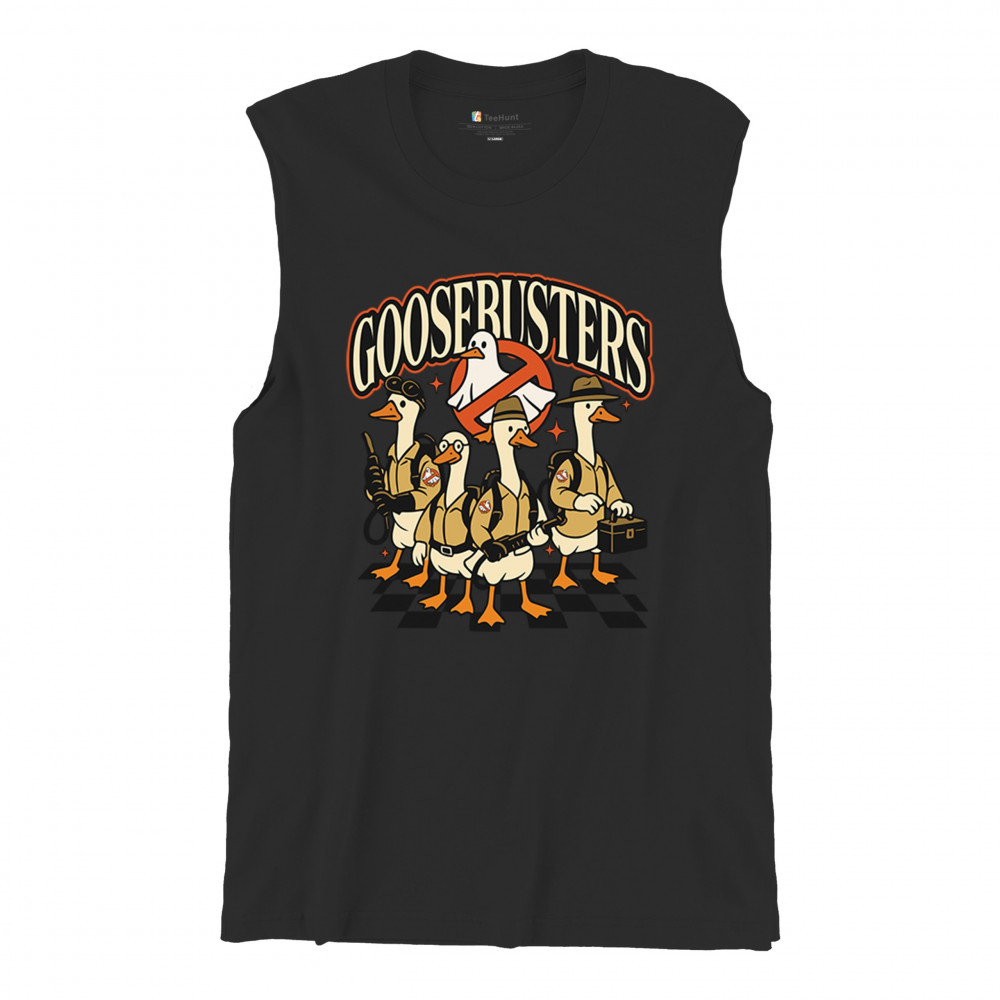 Goosebusters Halloween goose parody shirt – spooky goose design with silly goose humor, comedy bird style, Trick or Treat fun, and creepy night vibes.