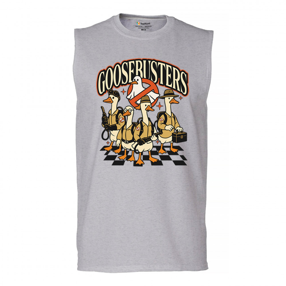 Goosebusters Halloween goose parody shirt – spooky goose design with silly goose humor, comedy bird style, Trick or Treat fun, and creepy night vibes.