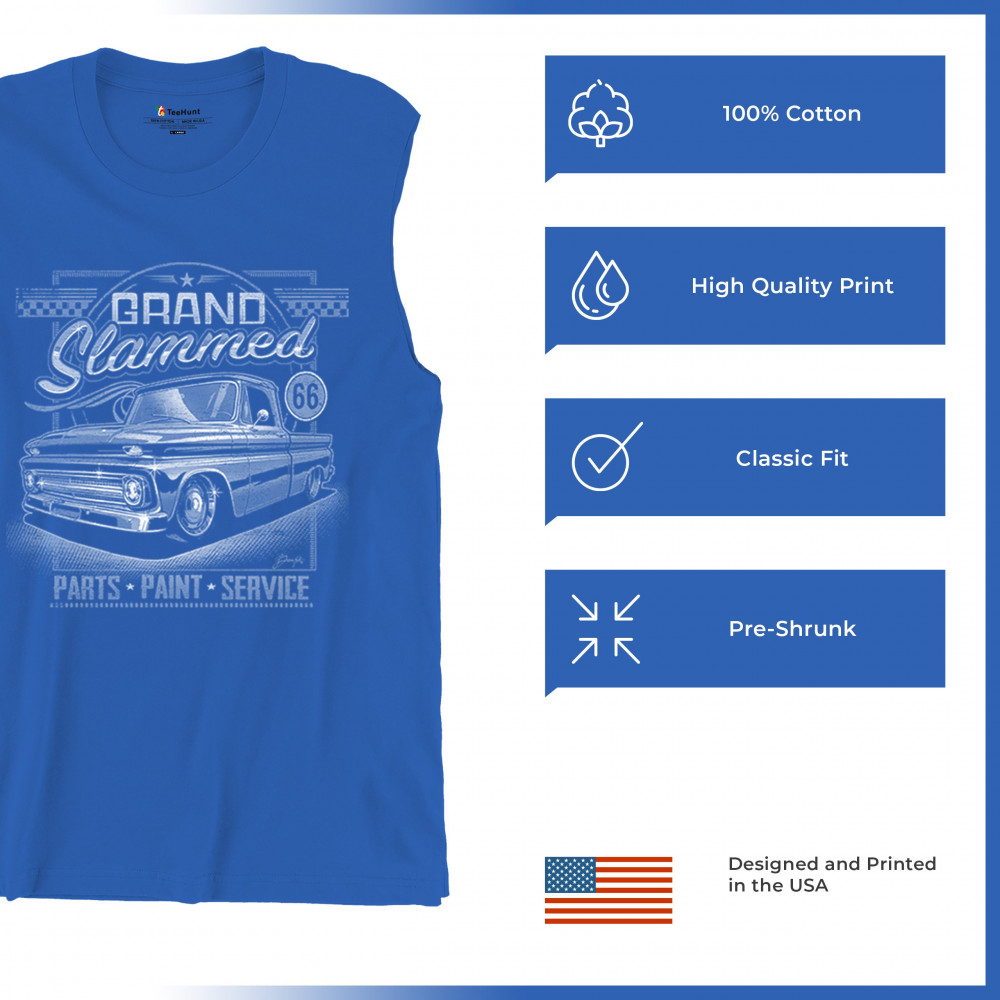 Step back in time with our Grand Slammed vintage truck design, perfect for fans of classic American automotive culture. This shirt showcases a beautifully detailed illustration of a custom truck, making it a standout piece for any car enthusiast. Whether you're attending a car show, hanging out in the garage, or just enjoying a casual day out, this shirt will keep you comfortable and stylish. It's an excellent gift for truck lovers, hot rod aficionados, and anyone with a love for vintage cars. Crafted from premium materials, this shirt offers both durability and softness. Add this unique design to your collection and celebrate the golden era of custom trucks.