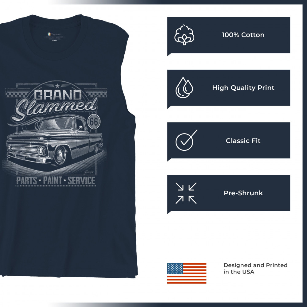 Step back in time with our Grand Slammed vintage truck design, perfect for fans of classic American automotive culture. This shirt showcases a beautifully detailed illustration of a custom truck, making it a standout piece for any car enthusiast. Whether you're attending a car show, hanging out in the garage, or just enjoying a casual day out, this shirt will keep you comfortable and stylish. It's an excellent gift for truck lovers, hot rod aficionados, and anyone with a love for vintage cars. Crafted from premium materials, this shirt offers both durability and softness. Add this unique design to your collection and celebrate the golden era of custom trucks.