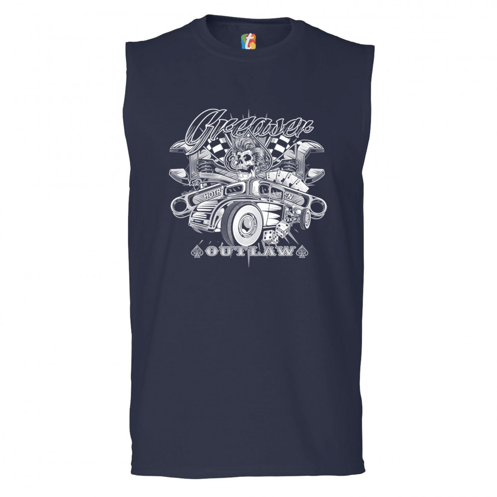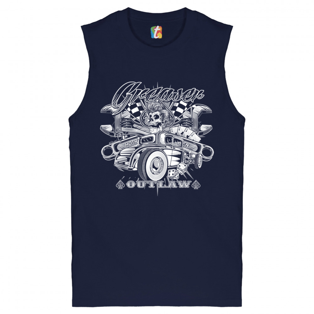 GREASER OUTLAW muscle shirt kustom kulture old school vintage hot rod men's navy blue