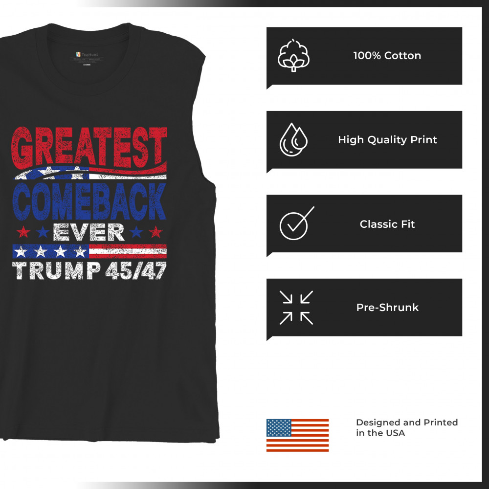 The "Greatest Comeback Ever" design is a tribute to resilience, patriotism, and the fight for American values. Featuring bold patriotic colors and a slogan that embodies the spirit of victory, this design is perfect for Trump supporters and conservatives who believe in never surrendering. Celebrate the leadership of Donald J. Trump as the 45th and 47th president and join the movement for America's future.