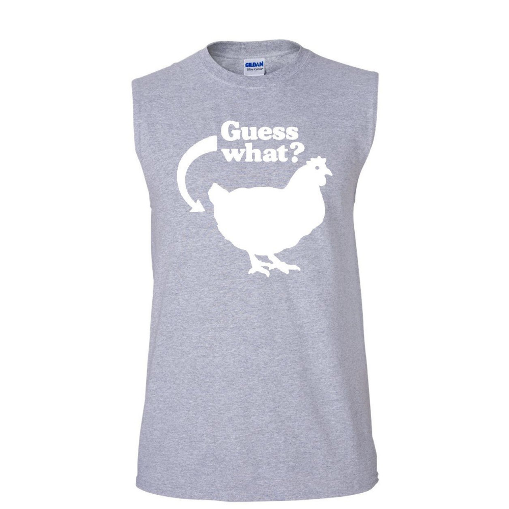 GUESS WHAT? CHICKEN BUTT muscle shirt funny ironic offensive humor sleeveless gray