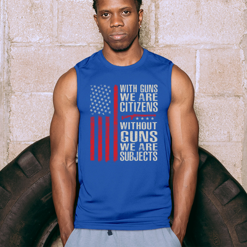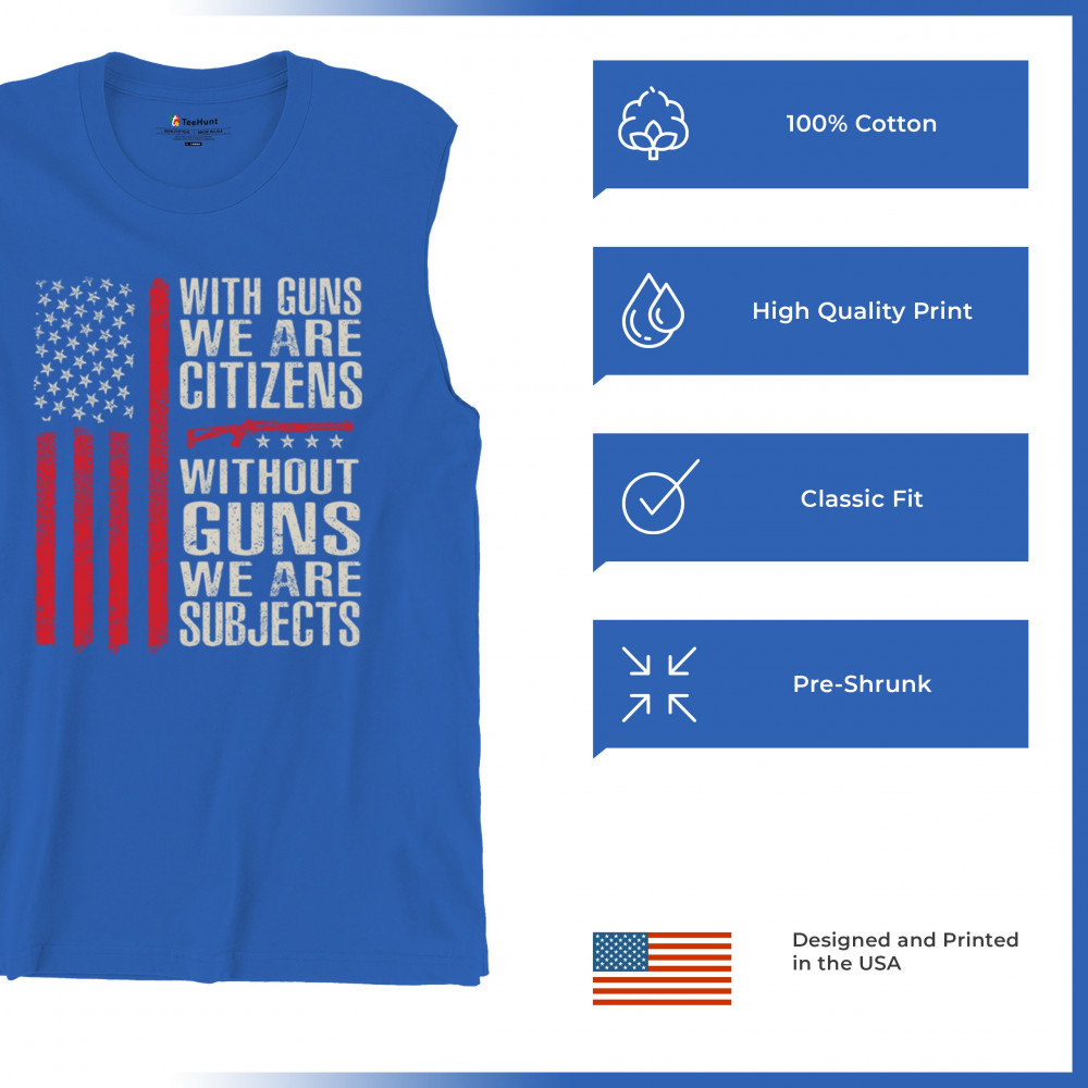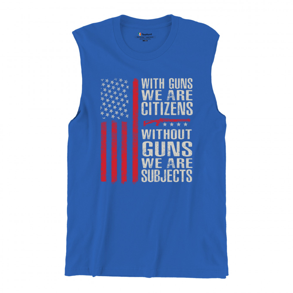 Make your voice heard with this powerful pro-2A design featuring an AR-15 graphic and distressed red American flag. The quote “With Guns We Are Citizens, Without Guns We Are Subjects†speaks directly to the heart of liberty and personal defense. A must-have for patriots, protestors, and gun rights supporters who defend the Constitution.