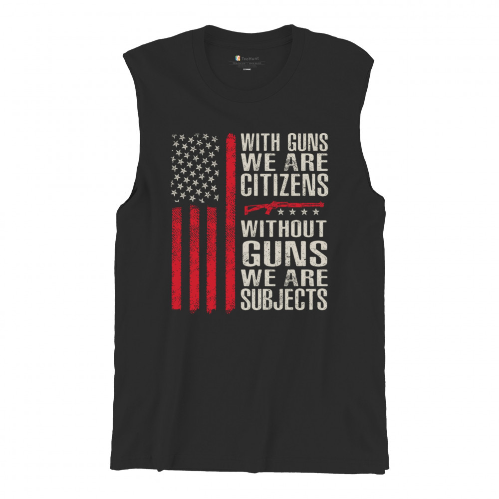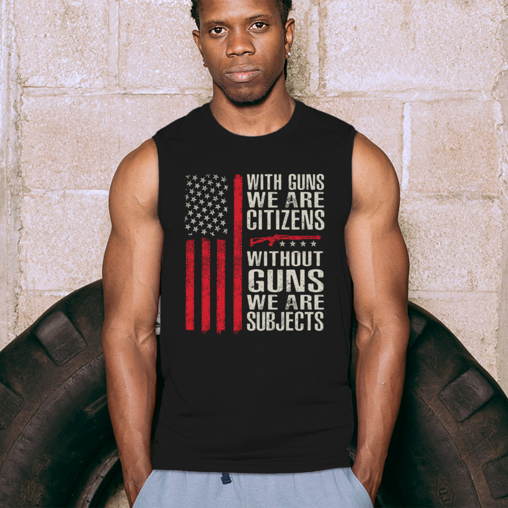 Make your voice heard with this powerful pro-2A design featuring an AR-15 graphic and distressed red American flag. The quote “With Guns We Are Citizens, Without Guns We Are Subjects†speaks directly to the heart of liberty and personal defense. A must-have for patriots, protestors, and gun rights supporters who defend the Constitution.