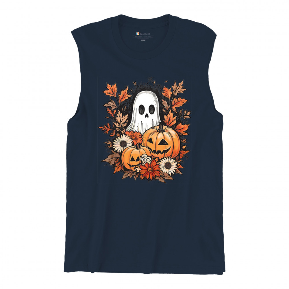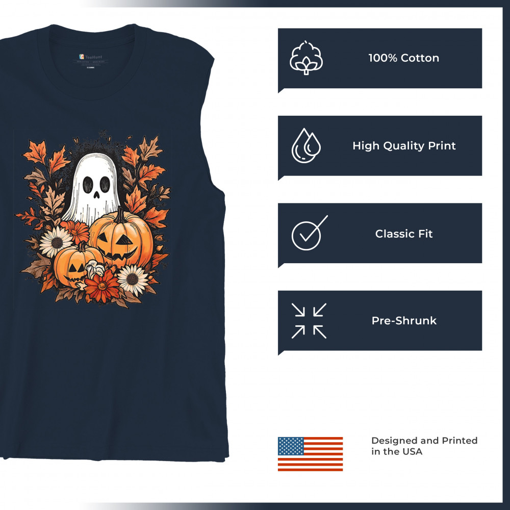 Celebrate the arrival of fall with this delightful design featuring pumpkins, autumn leaves, flowers, and a cute ghost. It's the perfect addition to your Halloween and autumn-themed wardrobe, or even as decor to welcome the fall spirit into your home. The combination of spooky and cozy elements creates a festive yet warm vibe, ideal for Halloween parties, pumpkin patch trips, or just enjoying the beautiful fall season.