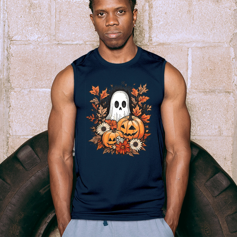 This pumpkin and ghost-themed design is perfect for Halloween and fall. Embrace the spooky season in style with this festive print!
