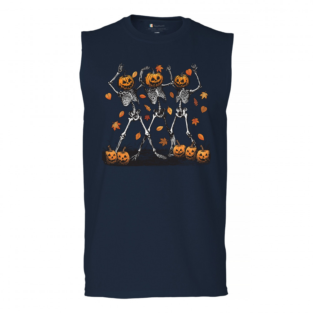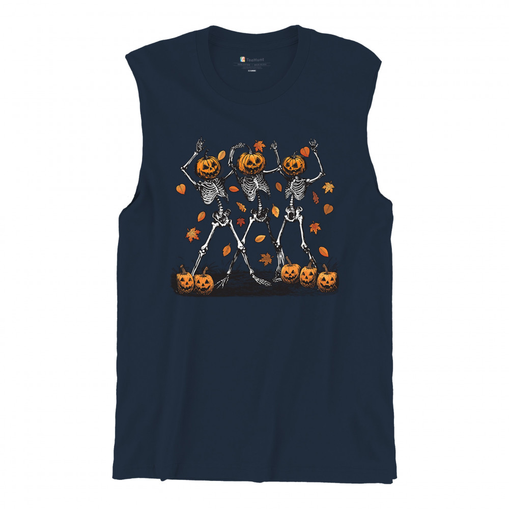 Add a touch of spooky fun to your wardrobe with this lively design featuring pumpkin-headed skeletons dancing through a swirl of autumn leaves. Perfect for Halloween parties, trick-or-treating, and fall festivals, this design is a must-have for anyone who enjoys the whimsical side of the spooky season. Made with comfort and quality in mind, this is the perfect apparel for all your October gatherings and events. Wear it to show off your Halloween spirit!