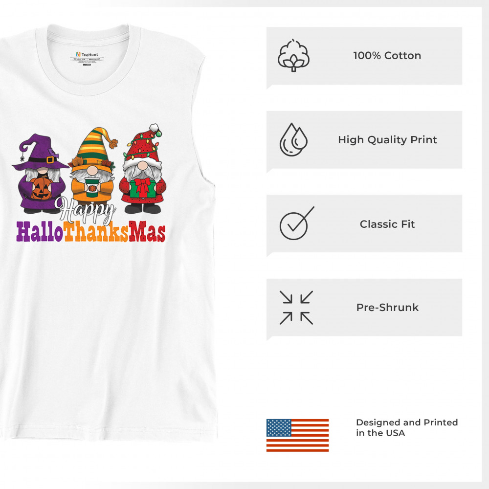 Celebrate the season of HalloThanksMas with this playful gnome design – perfect for Halloween, Thanksgiving, and Christmas festivities!