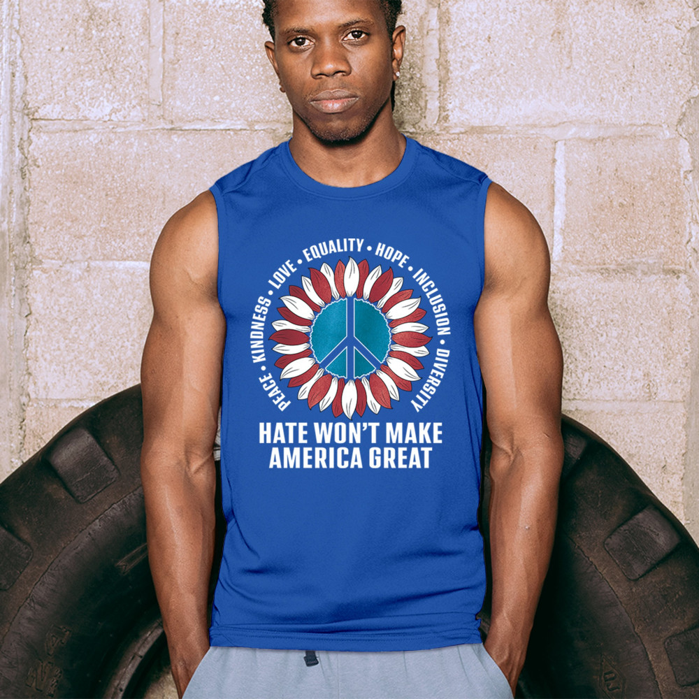 Embrace the message of love, equality, and unity with this eye-catching design. The sunflower and peace symbol represent a commitment to kindness and inclusion, rejecting hate and division. Perfect for those who support liberal values, this design is a bold statement against negativity and for a brighter future. Wear it proudly to show your belief in a diverse, united America. Let this design be a symbol of hope and progress for all.