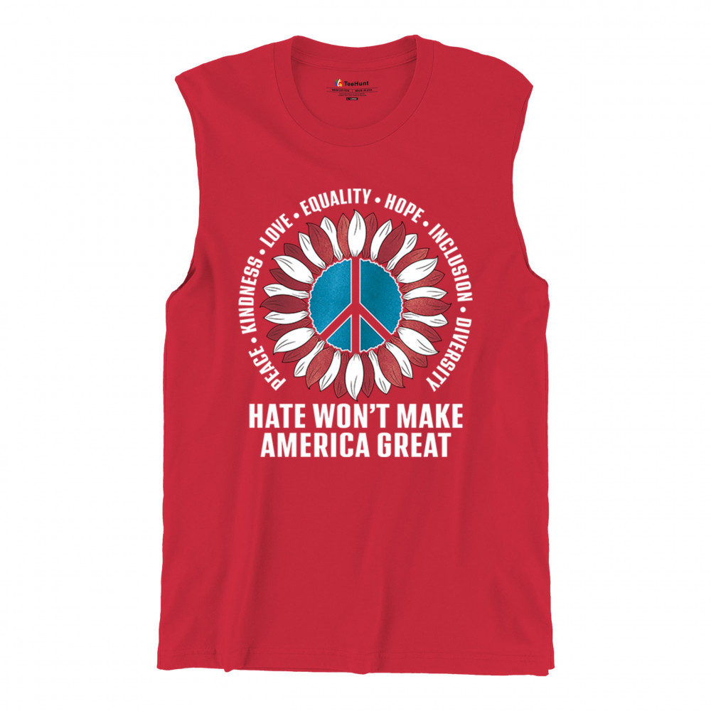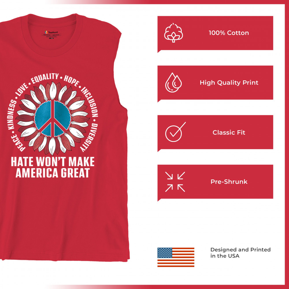 Embrace the message of love, equality, and unity with this eye-catching design. The sunflower and peace symbol represent a commitment to kindness and inclusion, rejecting hate and division. Perfect for those who support liberal values, this design is a bold statement against negativity and for a brighter future. Wear it proudly to show your belief in a diverse, united America. Let this design be a symbol of hope and progress for all.