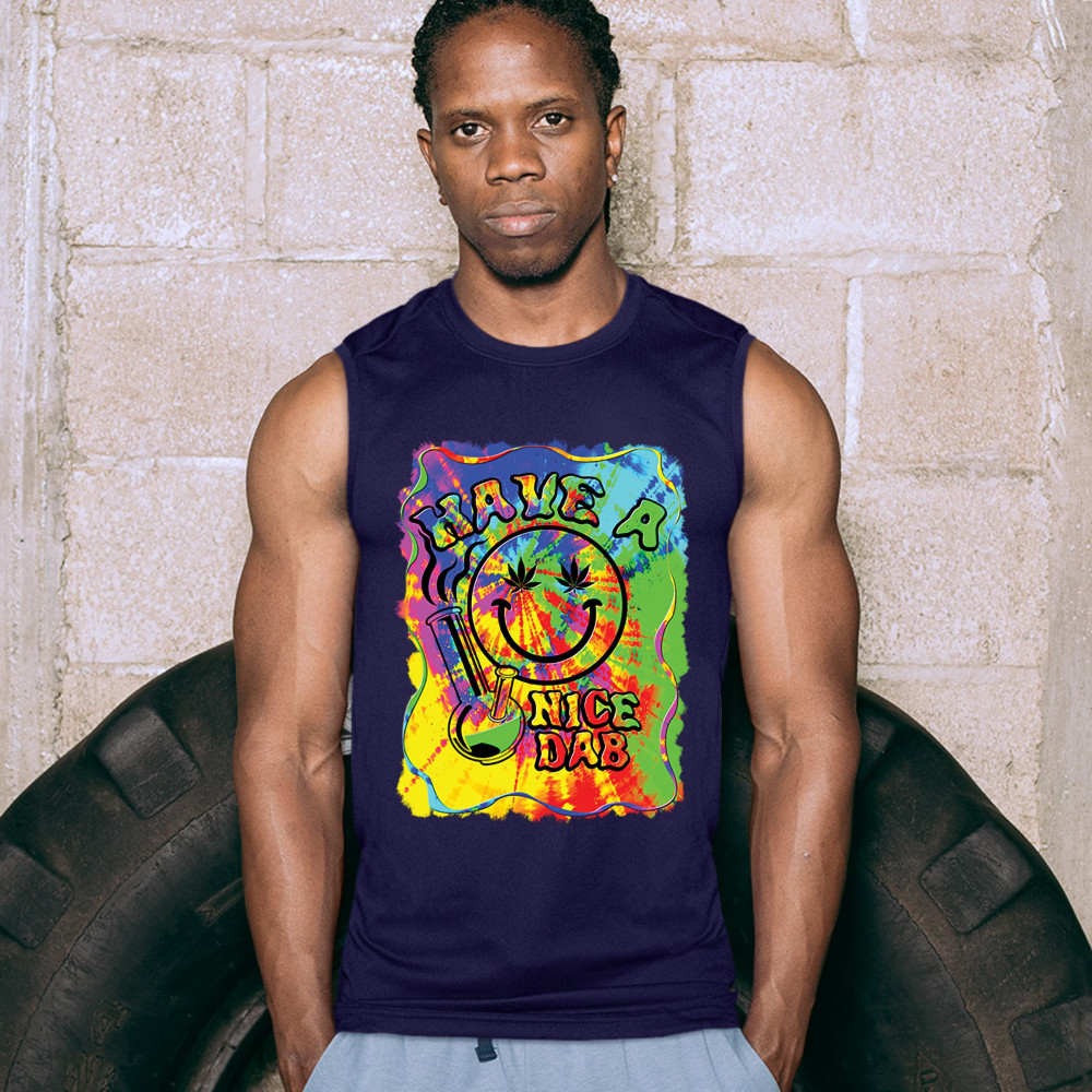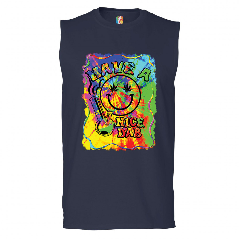 HAVE A NICE DAB muscle shirt 420 happy face hitting marijuana weed bong men's navy blue