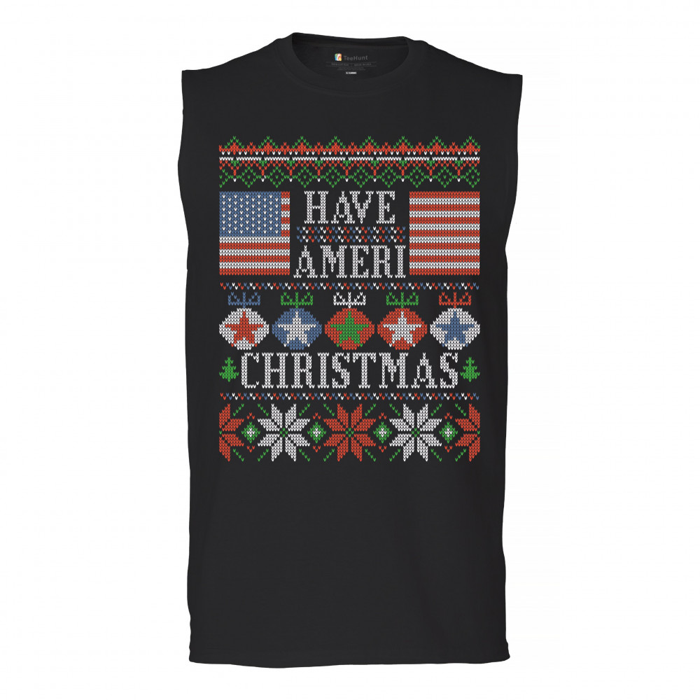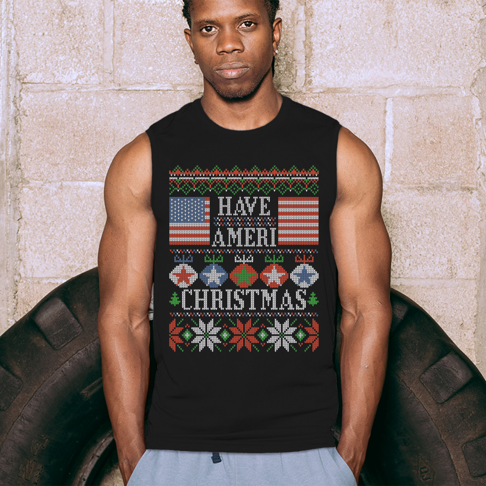 HAVE AMERI CHRISTMAS muscle shirt american flag ugly sweater patriotic men's black