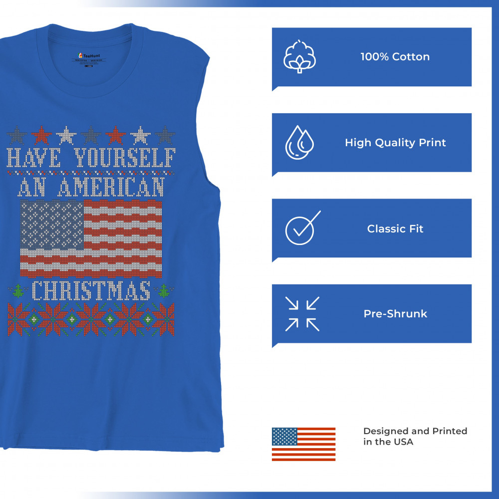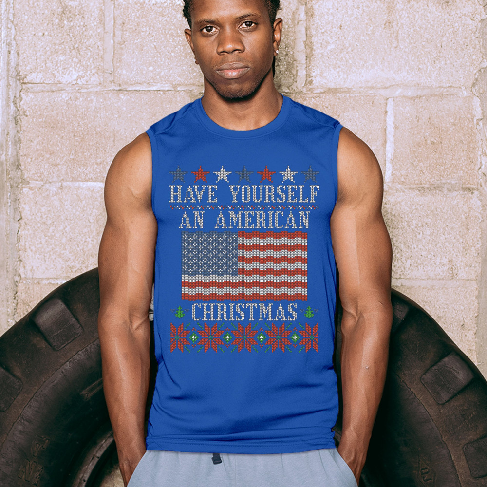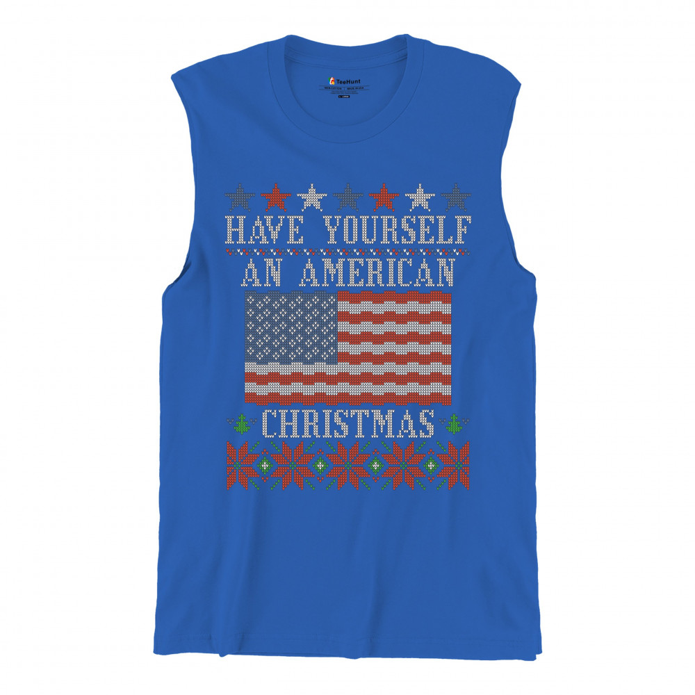 HAVE YOURSELF AN AMERICAN CHRISTMAS muscle shirt ugly sweater patriotic men's royal blue
