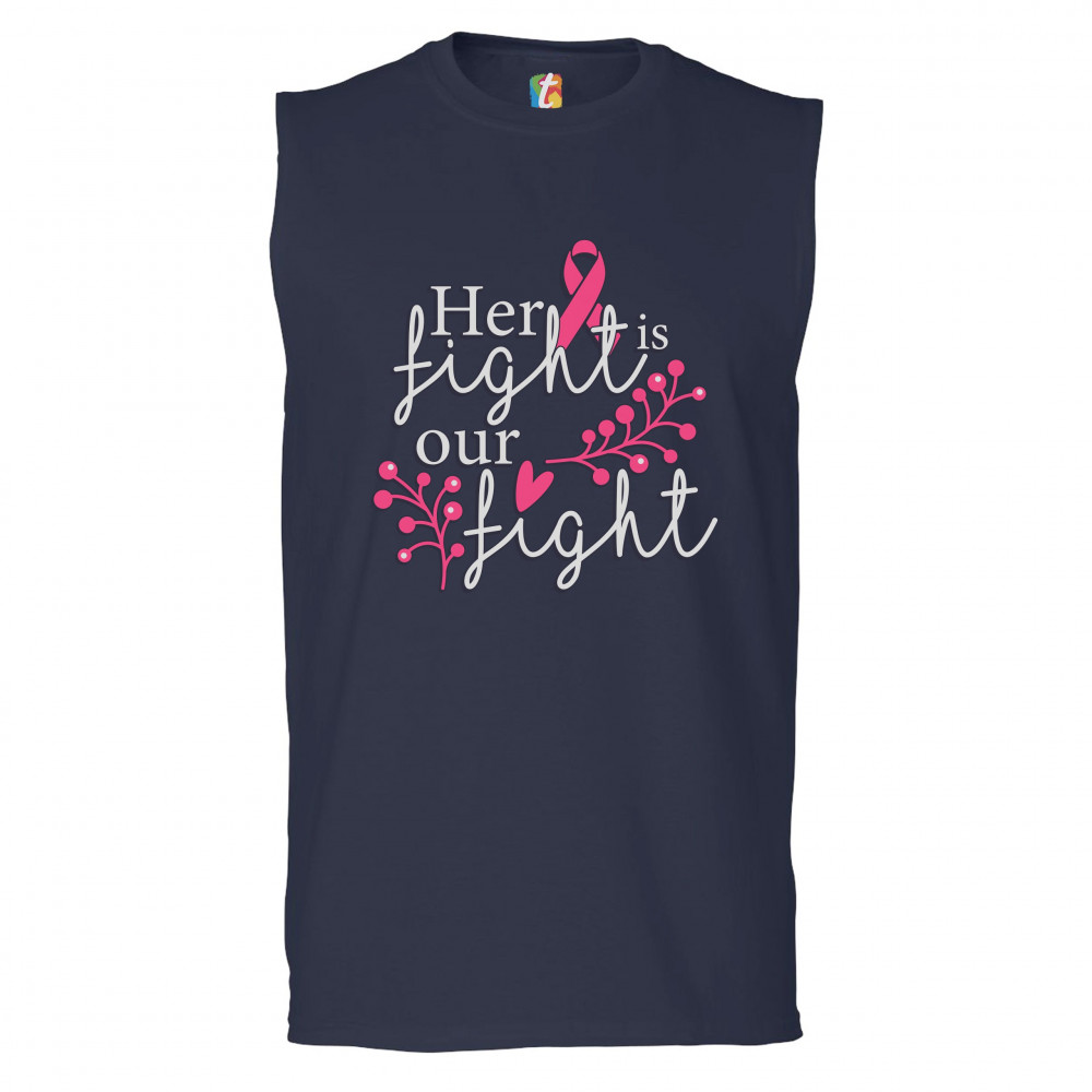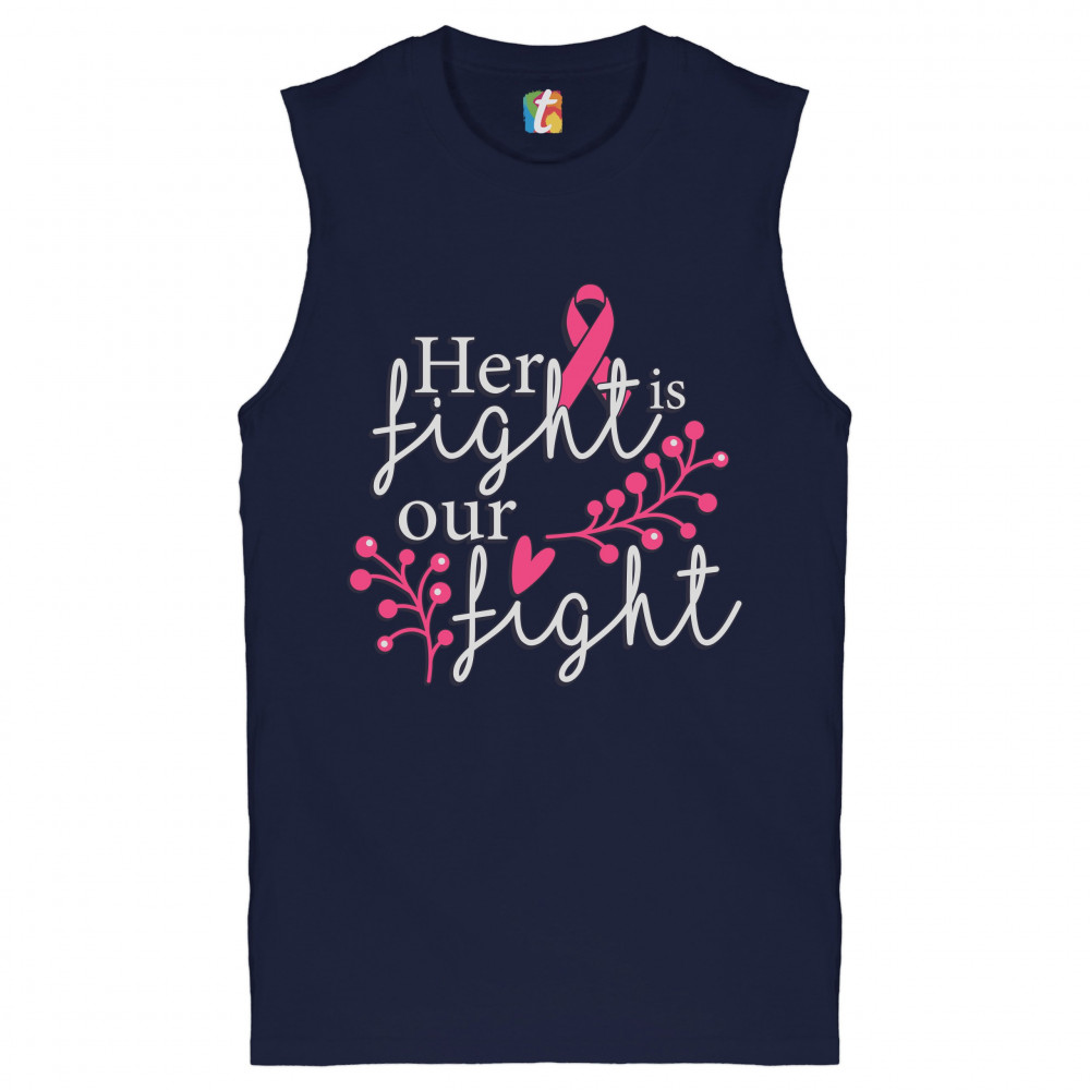 HER FIGHT IS OUR FIGHT muscle shirt breast cancer support pink ribbon men's navy blue