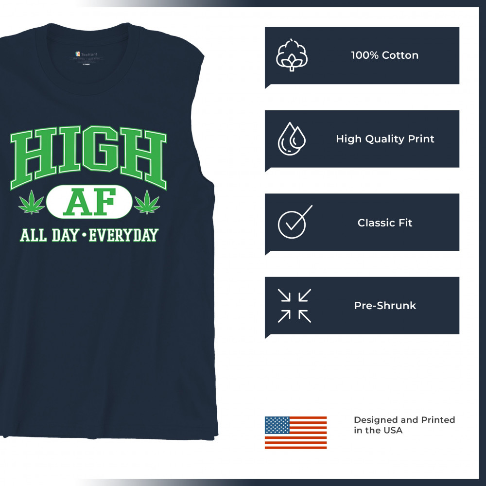 Stay lifted in style with this HIGH AF design, complete with bold letters, cannabis leaves, and the iconic “All Day · Everyday†slogan. It’s a loud, funny, and chill tribute to the 420 lifestyle—perfect for stoners, festival goers, and herb-loving free spirits who wear their vibe with pride.