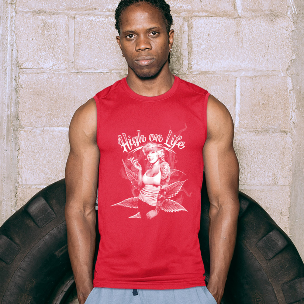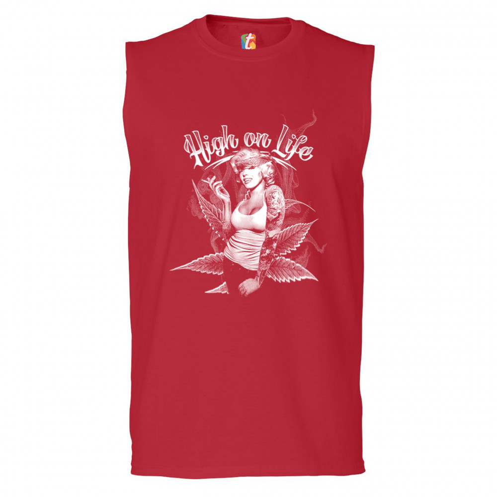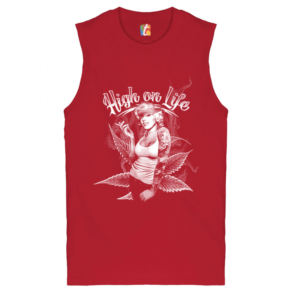 HIGH ON LIFE muscle shirt marilyn monroe holding a joint 420 pop culture men's red