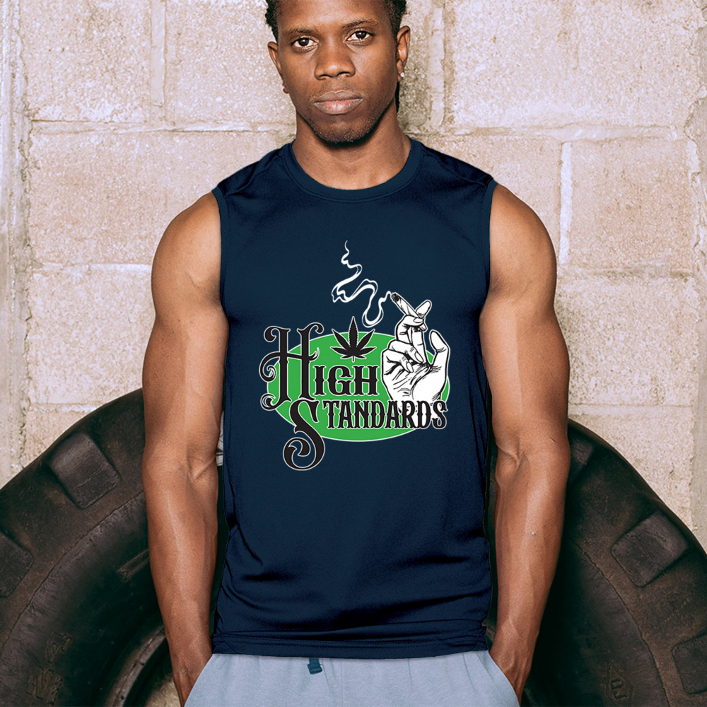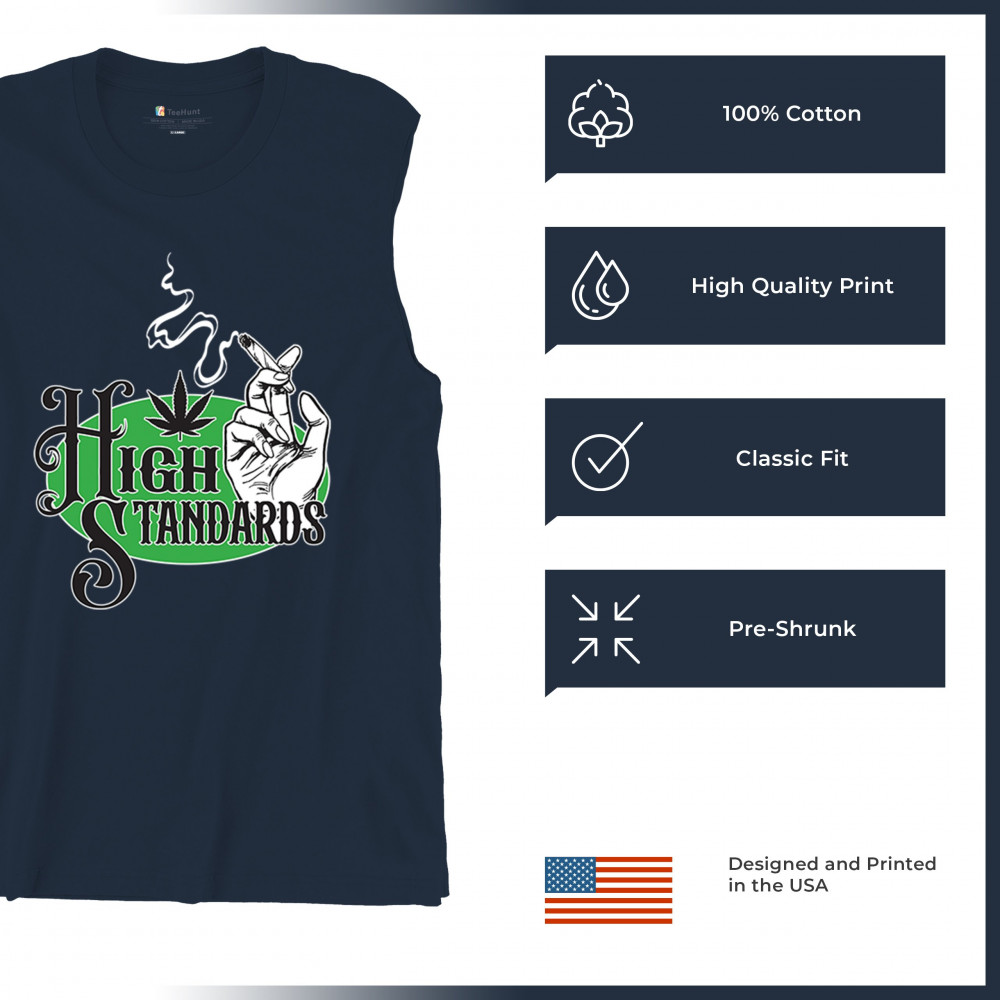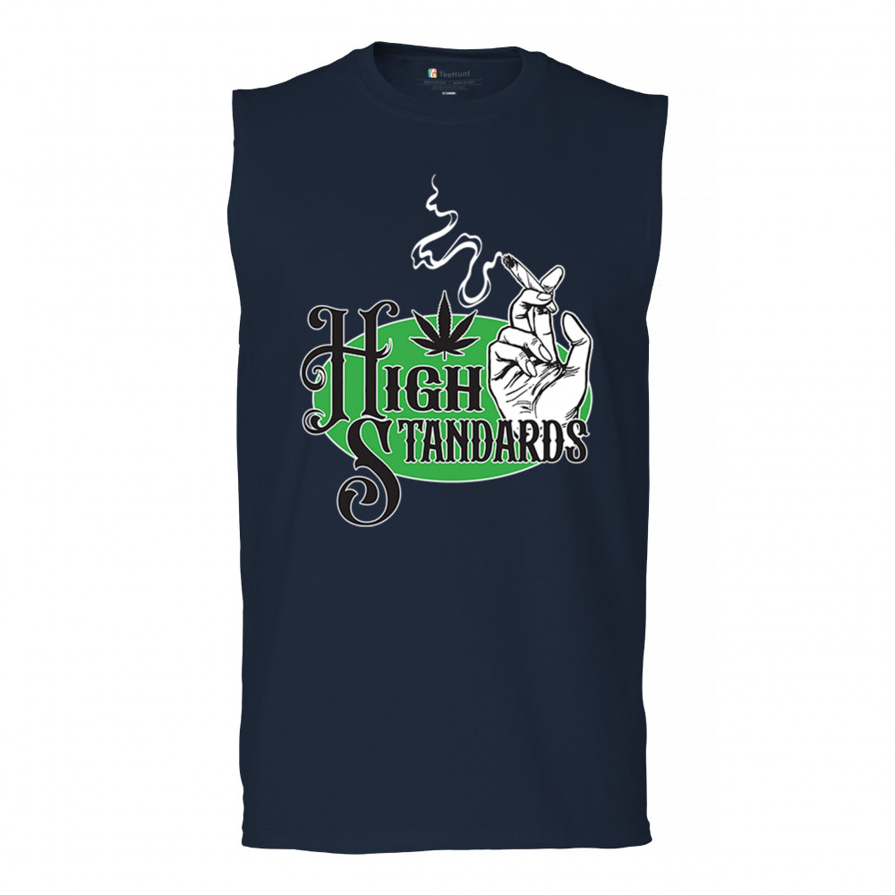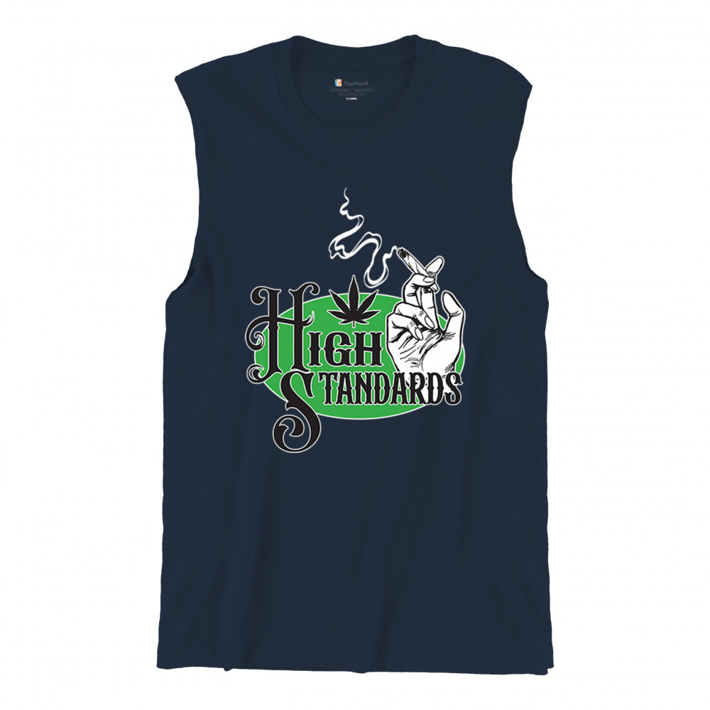 High Standards weed design with blunt humor and stoner pride. Features joint, cannabis leaf, pothead attitude, and classy chillout vibes.