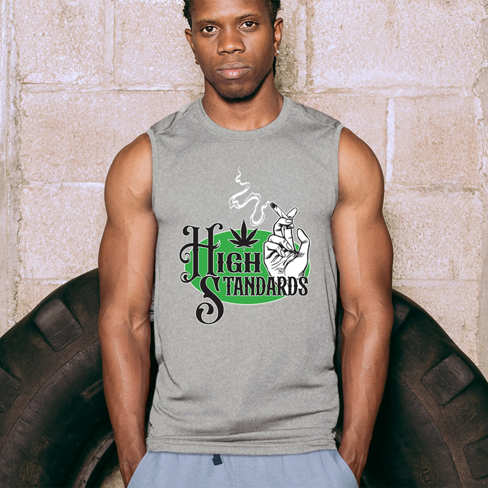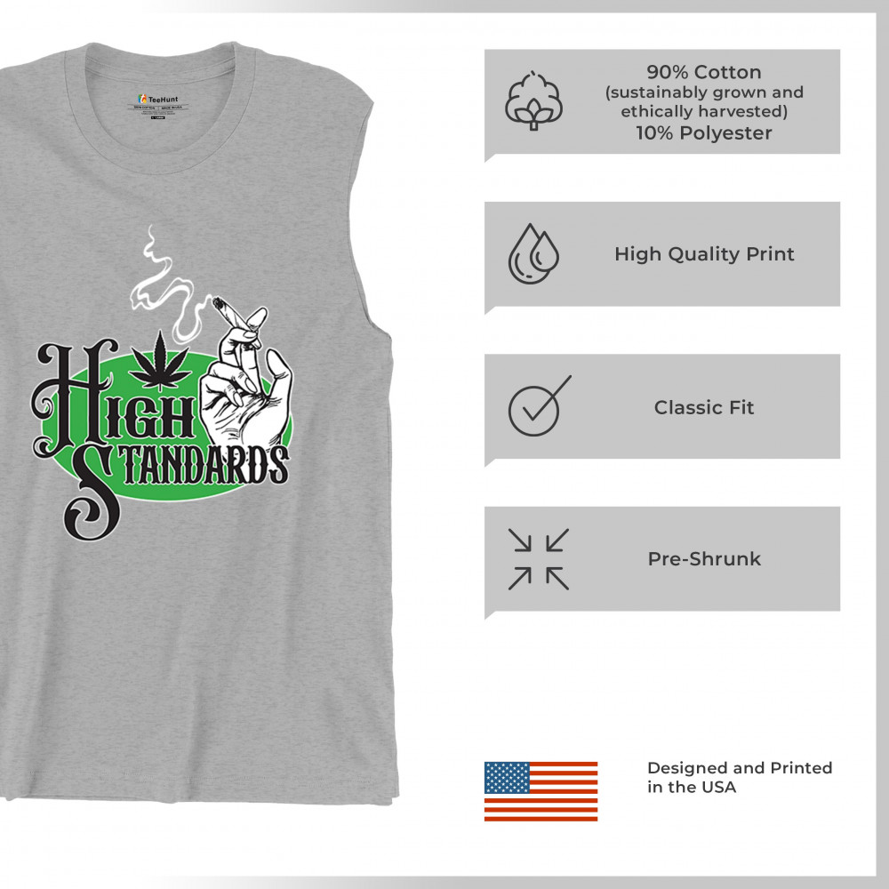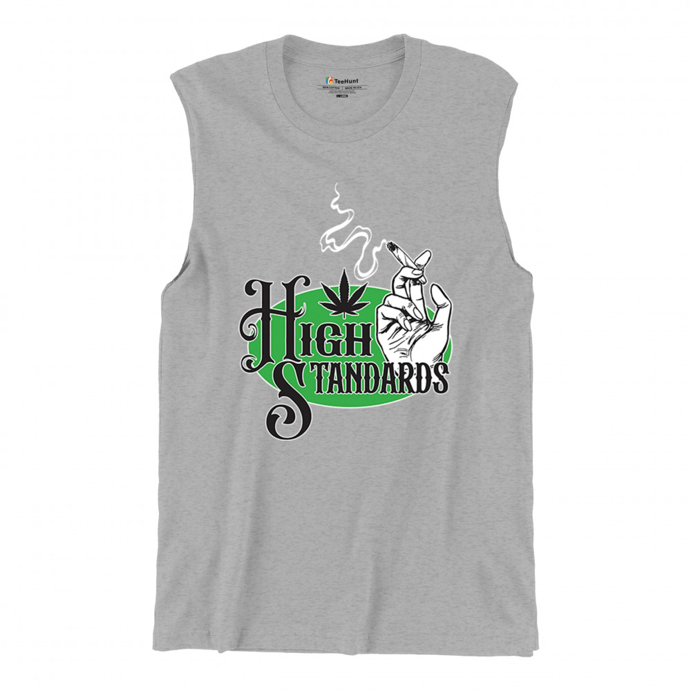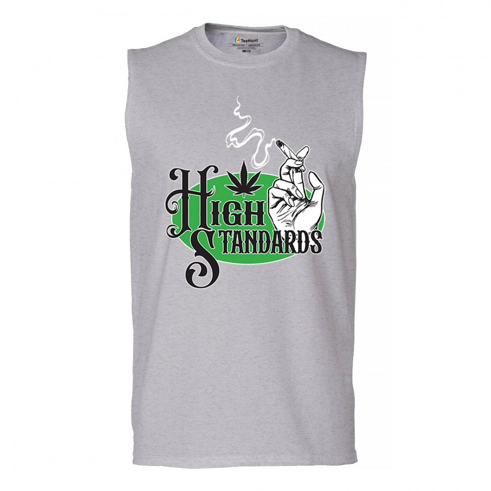 High Standards weed design with blunt humor and stoner pride. Features joint, cannabis leaf, pothead attitude, and classy chillout vibes.