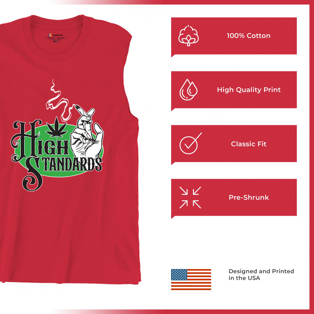 High Standards weed design with blunt humor and stoner pride. Features joint, cannabis leaf, pothead attitude, and classy chillout vibes.