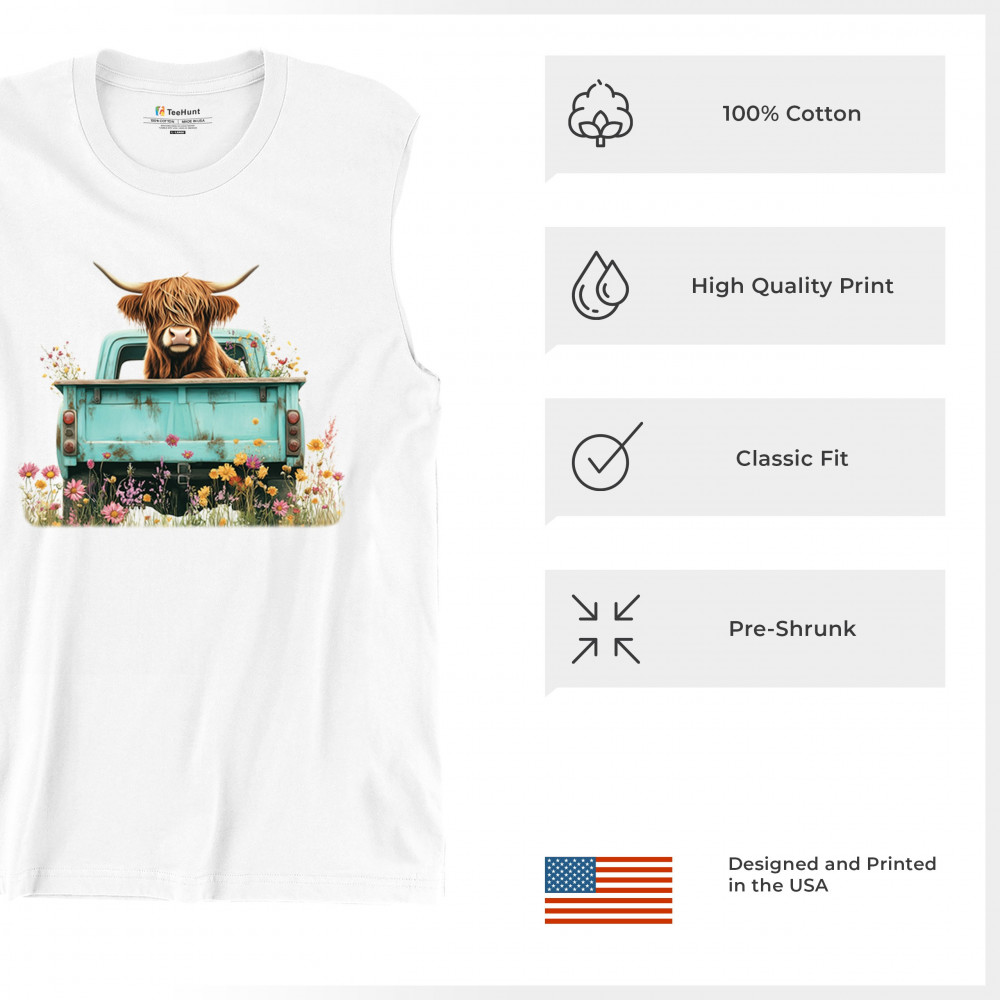 Celebrate rustic charm with this Highland Cow truck design, combining farmhouse floral truck art, boho ranch vibes, and country farmhouse shirt appeal. Perfect for cow lovers, barn style enthusiasts, and small town rural living. A vintage truck cow design that’s both cozy and stylish.