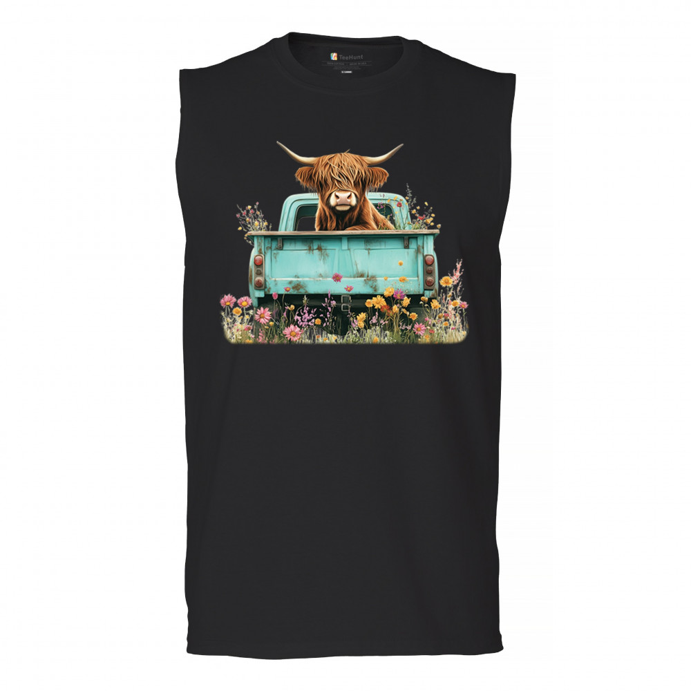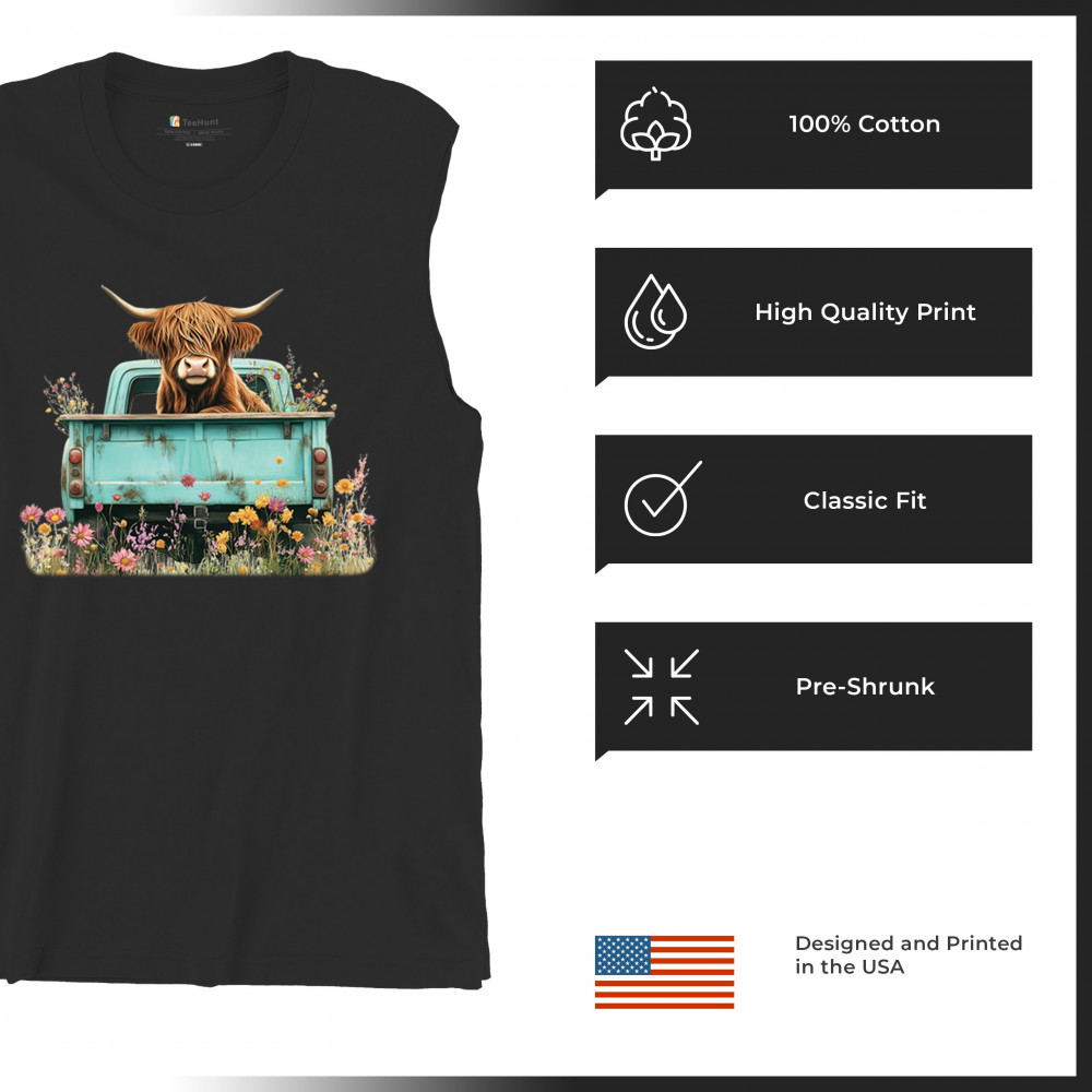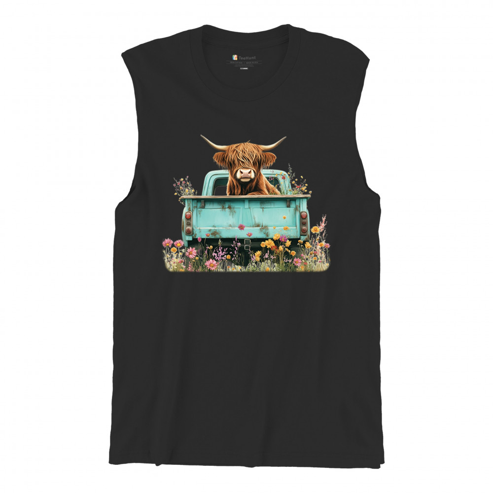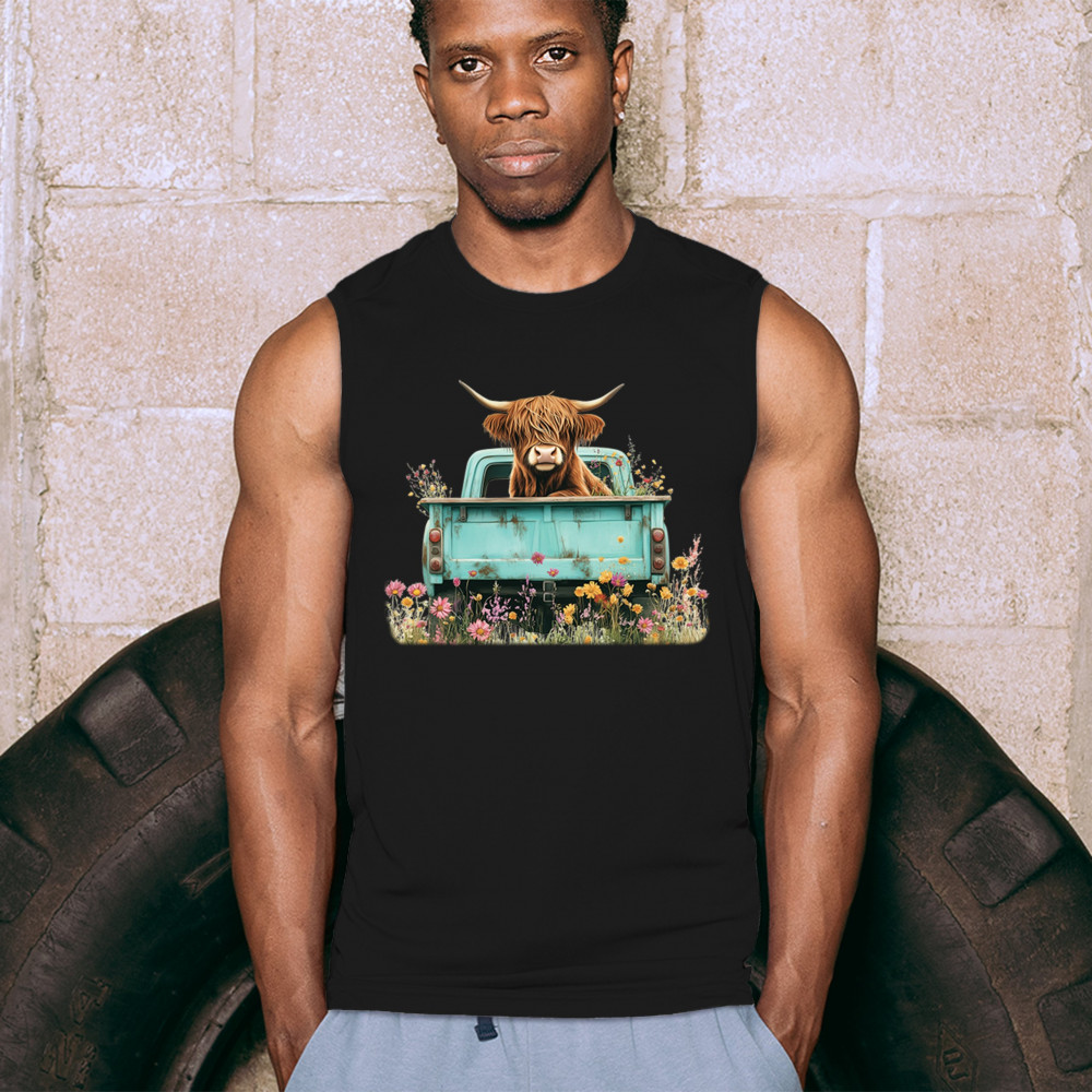 HIGHLAND COW TRUCK men's muscle shirt farmhouse country cowgirl ranch boho black