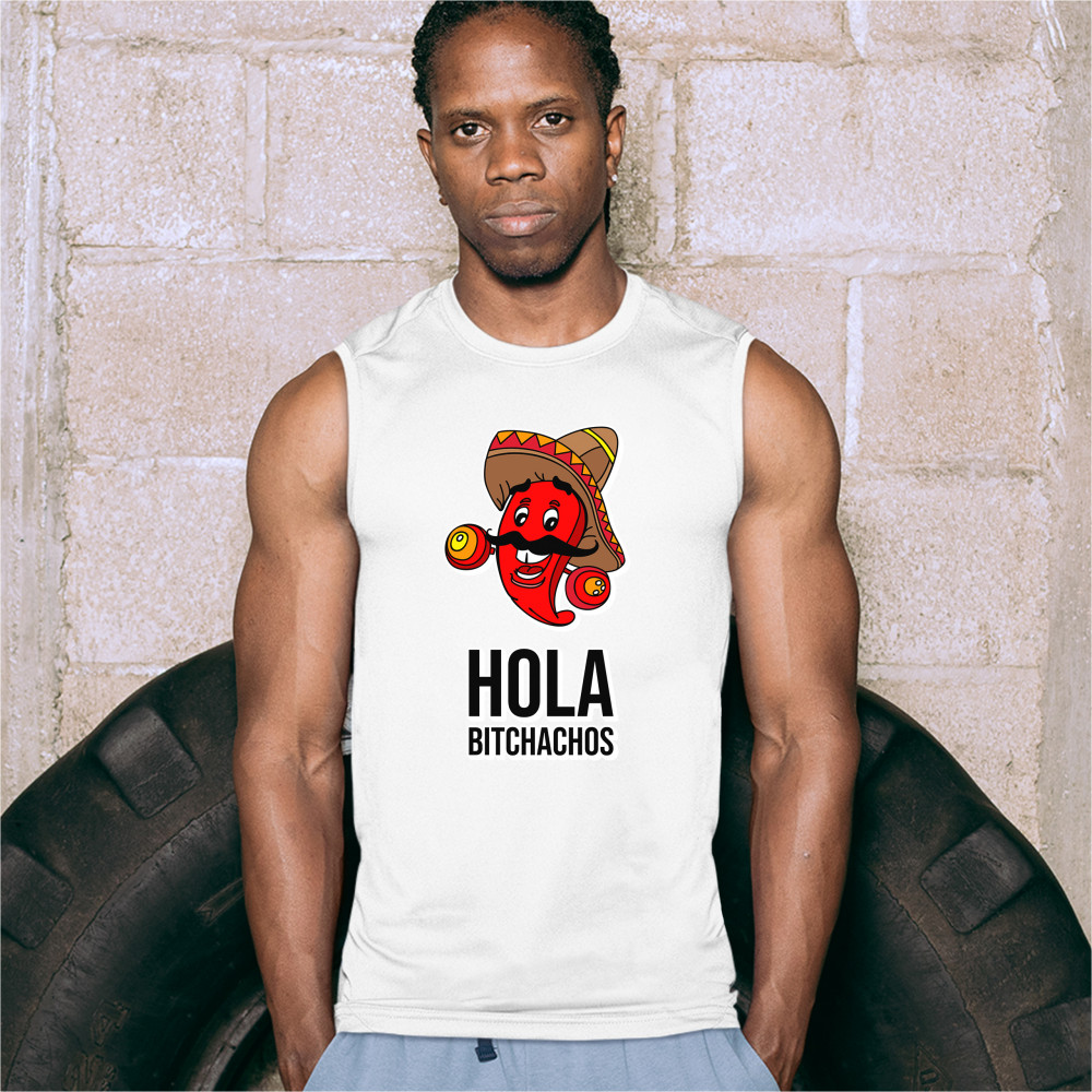 HOLA BITCHACHOS muscle shirt funny mexican chili pepper cinco de mayo men's white