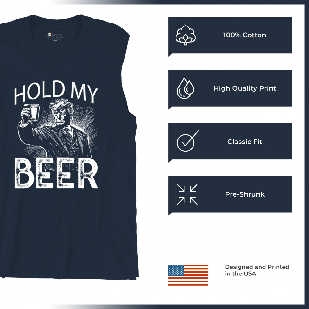 Celebrate the boldness of America First with the "Hold My Beer" design. A tribute to Trump supporters, conservatives, and proud patriots, this graphic humorously encapsulates the resilience and pride of the Red Wave movement. Perfect for rallies, casual gatherings, and those who proudly stand with Donald J. Trump, the 47th President, in the fight for freedom and the people's mandate.