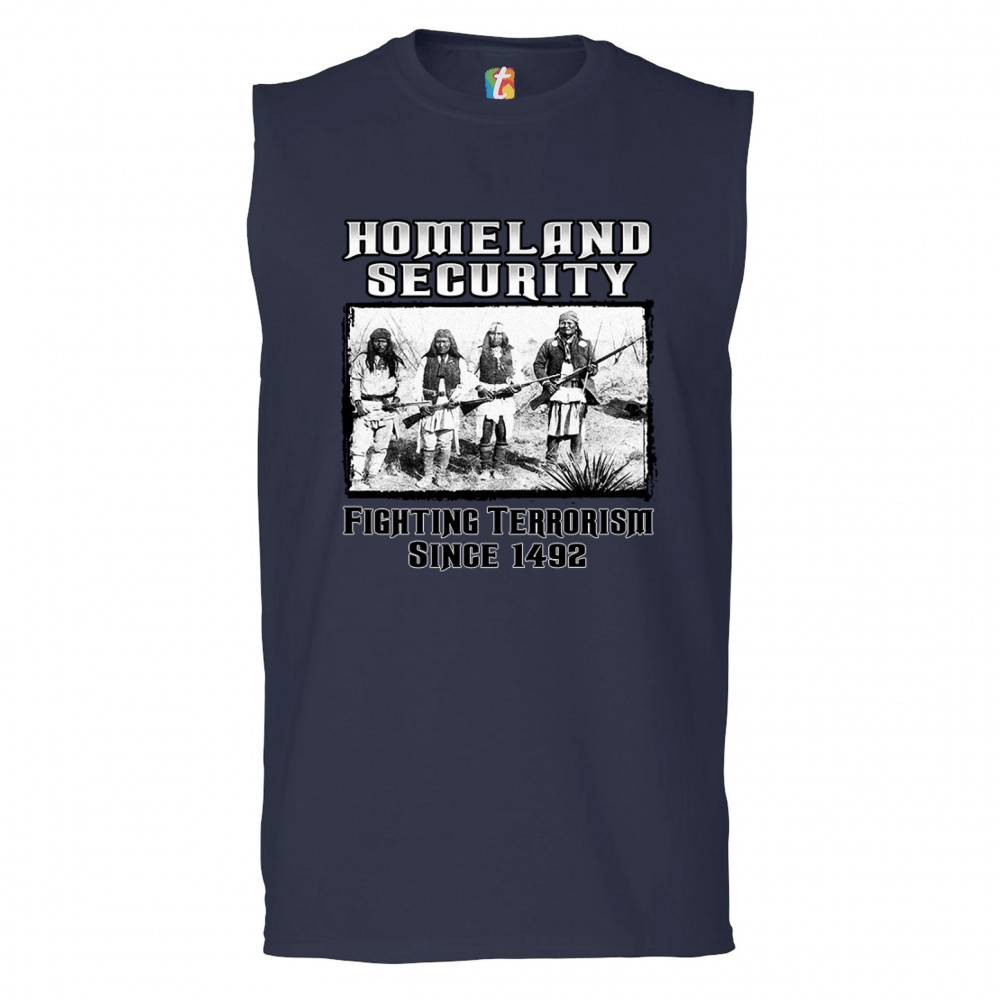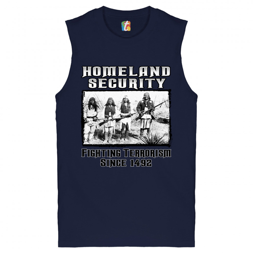 HOMELAND SECURITY muscle shirt native american indigenous patriotic men's navy blue