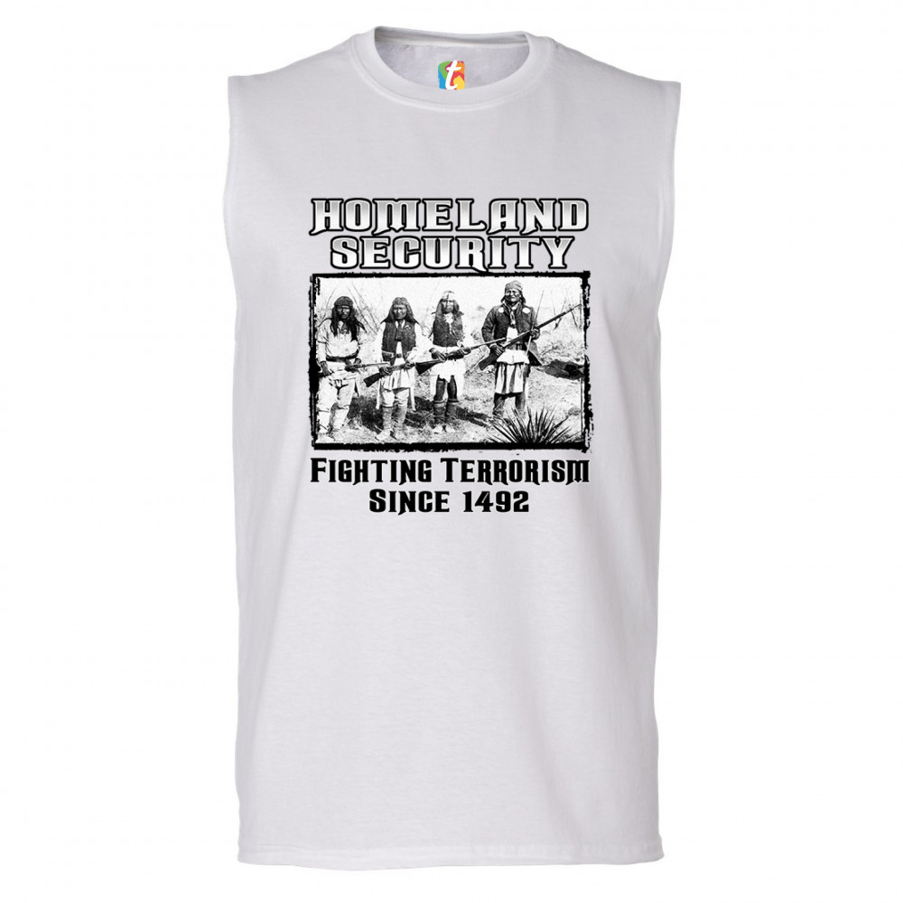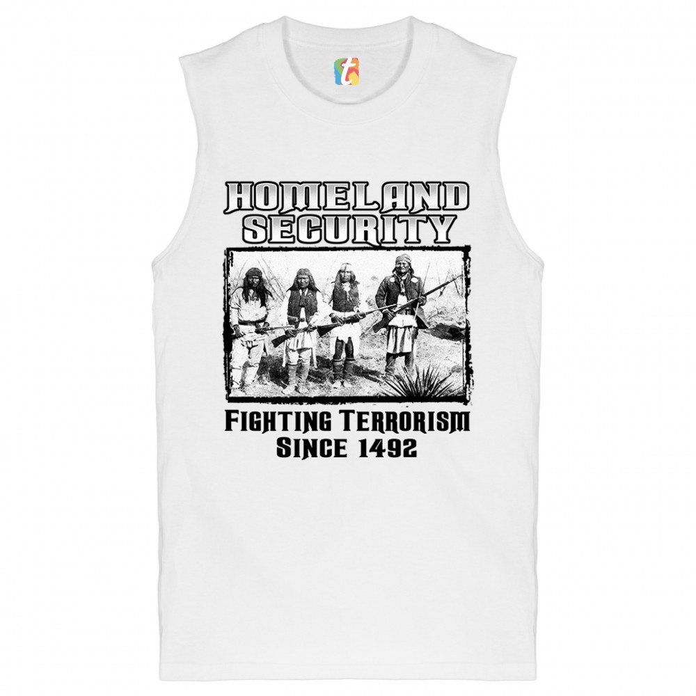 HOMELAND SECURITY muscle shirt native american indigenous patriotic men's white